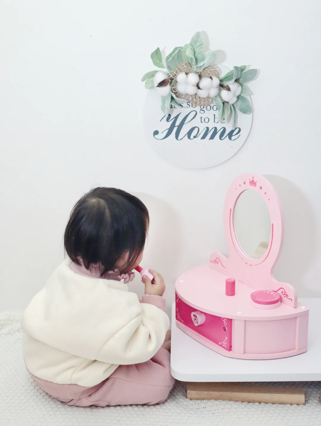 这个梳妆台我一眼就看中了,高颜值高质感,口红、粉底、指甲油、眼影应有尽有。真的不能低估小孩子的臭美能力,跟她演示一遍她就知道自己假装擦口红💄擦粉底之类的了,姐姐妹妹来也都hin喜欢这个梳妆台,看着他们几个小的假装化妆的样子,实在是太可爱了✌️✌️