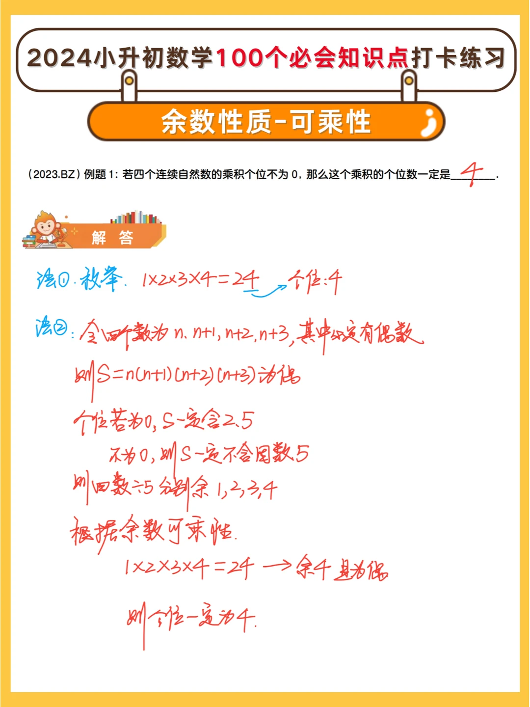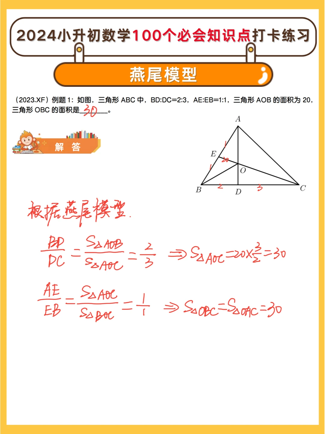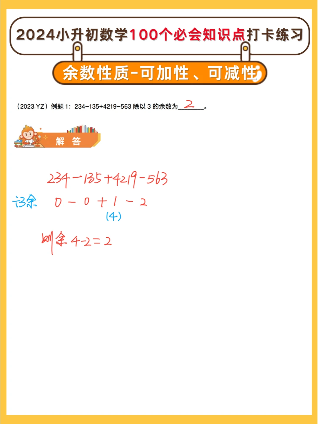 2024年重庆小升初数学100个必会知识点打卡练习(46-50) 4️⃣6️⃣数论-余数问题 4️⃣7️⃣余数性质-可加性、可减性 4️⃣8️⃣余数性质-可乘性 4️⃣9️⃣几何-燕尾模型 5️⃣0️⃣几何-相似模型