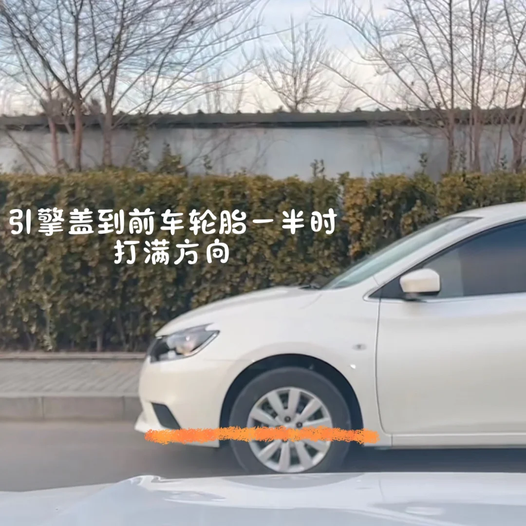 当保险杠与前方马路牙子重合时打满方向盘,即可安全转出通过。