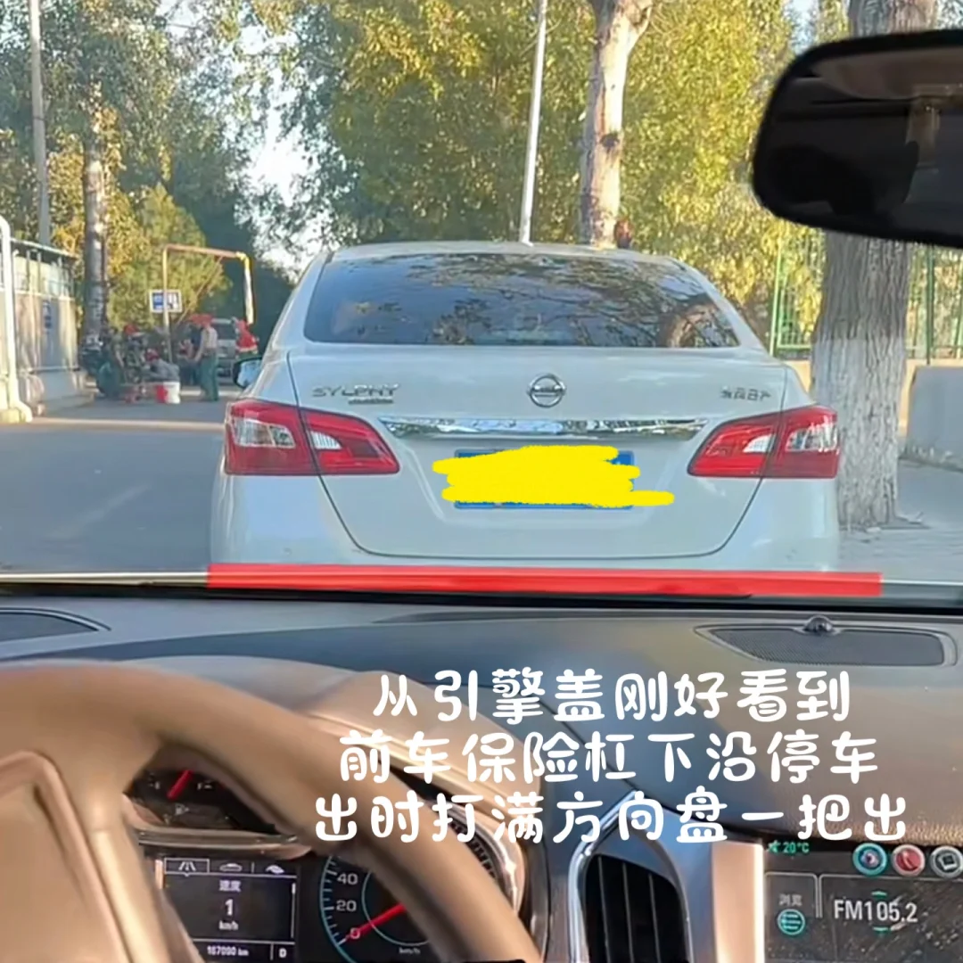 能看到前车保险杠下沿打满方向盘,即可安全驶出,否则调整后再驶出。