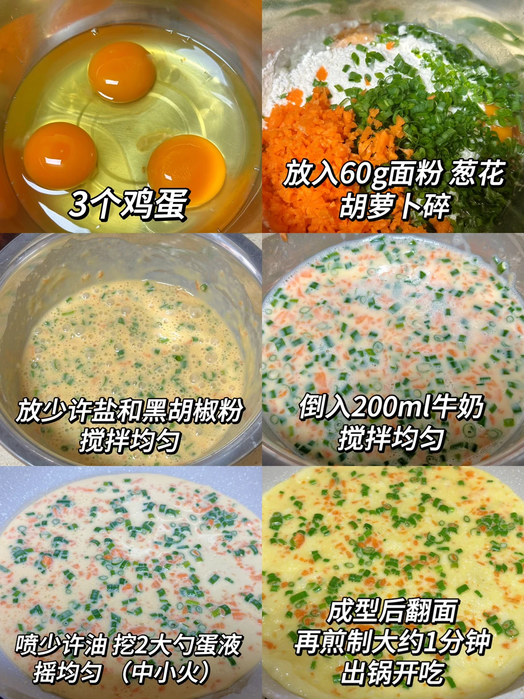 姐妹们!这个鸡蛋软饼真的绝了!软乎乎、奶香浓郁,带着葱花的咸香,出锅瞬间就被抢光!老人小孩都爱吃。而且减脂期也能放心吃,一大块饼才100大卡,吃2块满满的饱腹感,关键是做法超简单,搅一搅、摊一摊就搞定,厨房小白也能成功,姐妹们感觉快上手试试吧~ 🥗食材:3个鸡蛋、葱花、60g面粉、200ml牛奶(食材可做4-5个饼) 🥘做法:如图所示~ 1⃣️鸡蛋打入碗中加入葱花和胡萝卜碎➕60g面粉(约大6汤匙))➕少许盐+少许黑胡椒粉(可不加)搅拌均匀,搅拌成面糊状 2⃣️倒入200ml牛奶,搅拌均匀,不要太粘稠要不然锅中摊不开(也不要过于稀了摊锅里会烂) 3⃣️热锅刷一层油、把面糊倒适量摊匀薄薄一层,等鸡蛋凝固,翻面煎至两面金黄就可以。 软软的鸡蛋饼就做好了,一家人都够吃,营养又方便 💡 我的小秘诀: 饼要软香,鸡蛋很关键!我一直回购1号会员店的鸡蛋,个头大、品质好,还是可生食级别的(做溏心蛋、提拉米苏也安心)。特别是最近活动,囤货超划算!京东物流超快,第二天就能收到新鲜鸡蛋,超省心!🛒 (我都是趁活动多囤点,毕竟鸡蛋真是我家消耗王!)对了,来抄作业,在京东打字“1号店品质666”,开会员卡能送一年的鸡蛋呢,我准备搞一个哈哈哈哈平时做饼、炒菜都用得上!买其他的还享受会员价也不错~