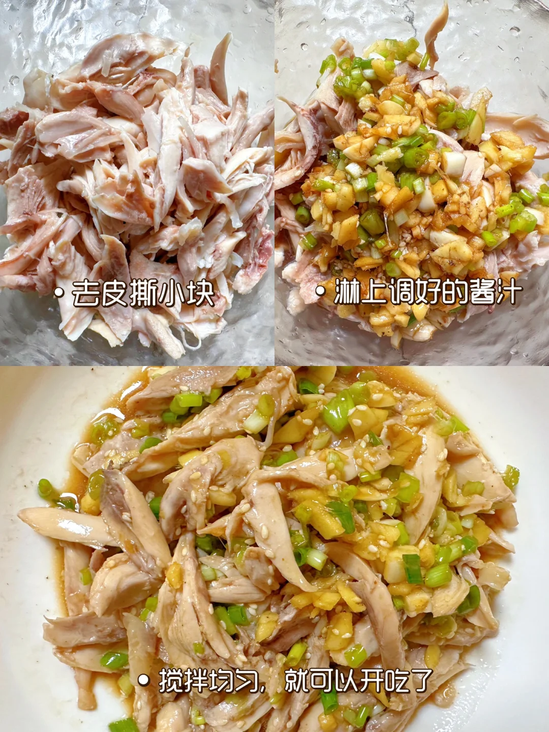 昨天吃的酸辣柠檬手撕鸡腿,今天来个不辣的版本,鸡肉鲜嫩多汁,也巨好吃!做法超简单快手~减脂期可以做哟!