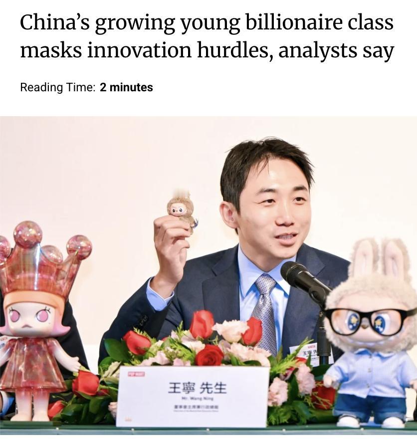 外媒:瑞银最新报告显示,中国资产达10亿美元以上的超级富豪中,约98%为第一代创业者,且整体更年轻,反映出强劲的财富创造能力。 以38岁的泡泡玛特创始人王宁为代表,新晋亿万富豪多集中在40至50岁,比其他地区更年轻。报告统计,今年中国内地共有470名亿万富豪,仅次于美国的924人。 科技创新是财富增长的重要动力,比亚迪创始人王传福等被列为关键推动者。但分析人士指出,如果强化国有控制以及缺乏“失败容错机制”,在一定程度会抑制企业家精神与创新活力。