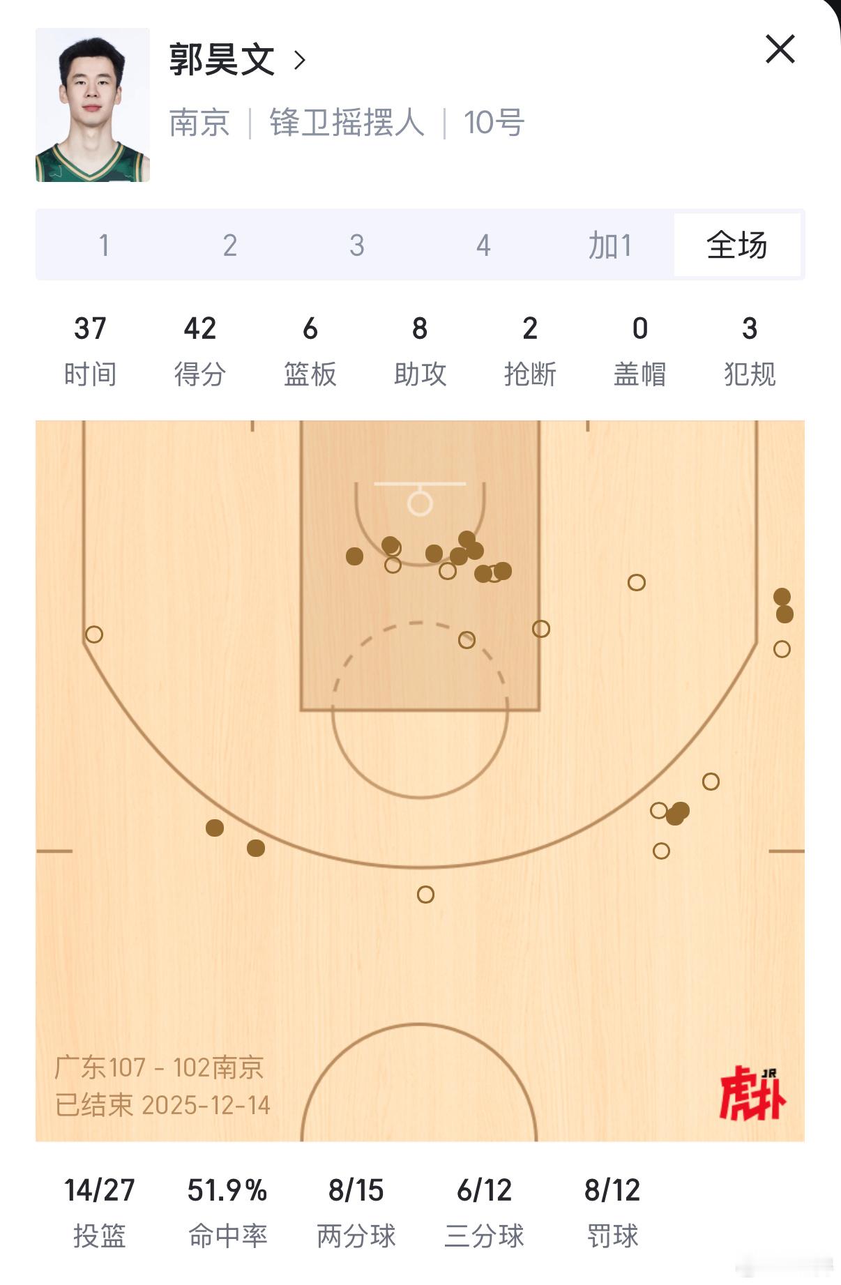 打个锤子!广东107-102险胜同曦,看看球员数据,谁才是赢球的最大功臣:1