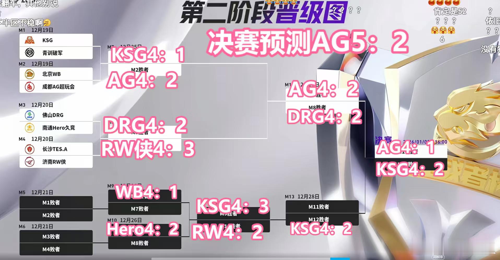 第二轮预测汇总(更新中)图1 瓶子(总决赛 AG vs WB)图2 北笙(总决赛 AG vs KSG) 图3 时间(总决赛 AG vs KSG ) 图4 白衣(总决赛 AG vs KSG )