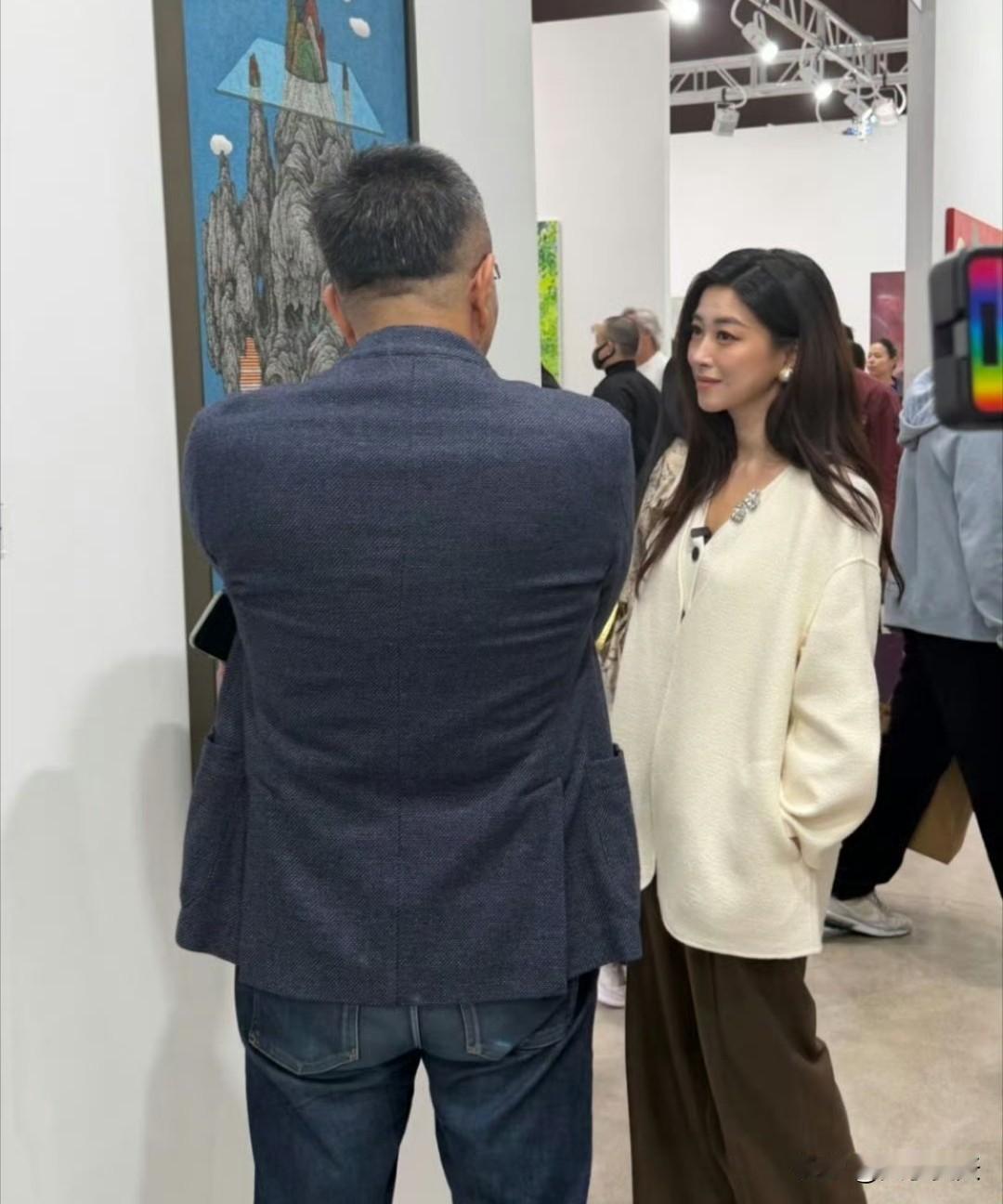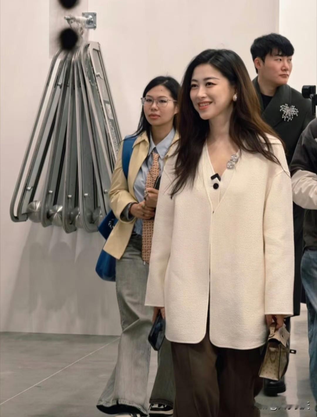 41岁朱珠在上海看艺术展,她的状态太好了,身材苗条,皮肤白皙,身上完全不显老态,美貌很出众!