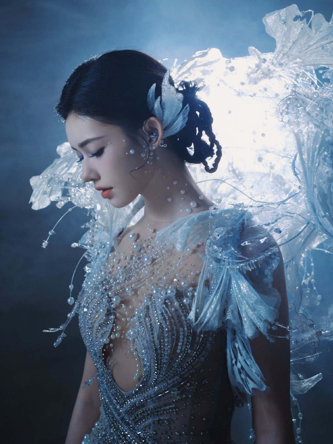 林允这是在cos甄姬吗 珍珠水钻缀满裙摆,林允在舞台上翩然若仙,修身的蓝色长裙勾勒曼妙身姿,羽翼轻扬间尽显洛神风采,简直是真人版甄姬!