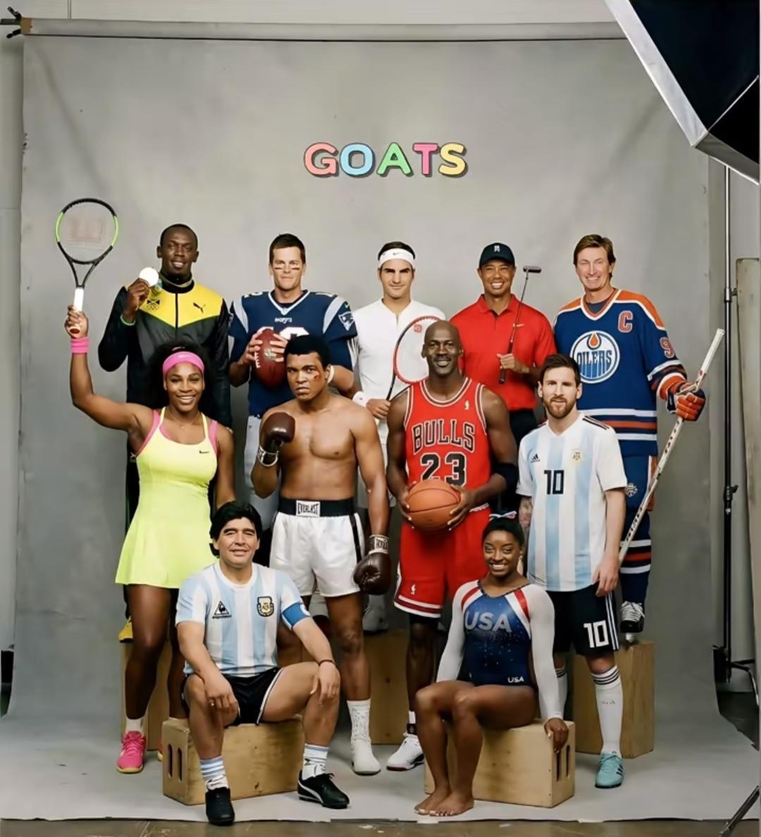 体坛goat大合影,缺谁谁尴尬,德不配位更尴尬! 足球:马拉多纳、梅西! 篮球:乔丹! 网球:费德勒! 短跑:博尔特! 拳击:泰森! 高尔夫:武兹! 这里面缺了贝利、德约科维奇等人,还有一些人争议很大,大家怎么看?#梅西是你心中的球王吗?#