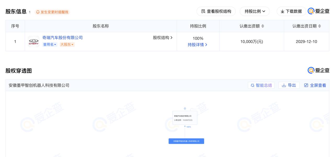 一家造汽车的干了一家机器人公司,从成立开始的11个月时间内卖了1000只机器狗,这算不算“不务正业”。 近日,奇瑞墨甲机器人在安徽芜湖举行了“2025年第1000只机器狗应用交付”仪式。而奇瑞墨甲是在今年1月7日成立,注册资本1亿元人民币,经营范围含智能机器人销售、智能机器人的研发、工业机器人销售、智能基础制造装备制造,是奇瑞的全资控股的子公司。 除了墨甲之外,安徽还有一批机器人相关的企业,他们在11月中旬成立了安徽省机器人协会并举办了2025年智能机器人场景对接会。近年来,安徽坚持把发展智能机器人产业作为主攻方向,今年前三季度工业机器人产量突破4.7万套,居全国第5位。