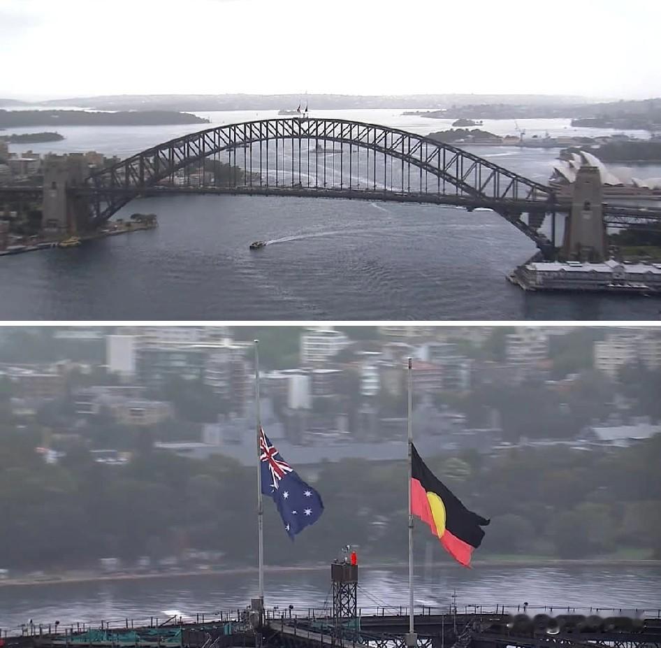 澳大利亚悉尼海港大桥降半旗纪念邦迪恐袭死伤者。 阿尔巴尼斯总理今天上午在新闻发布会上表示,澳大利亚全国今天将降半旗,为所有死伤者哀悼。