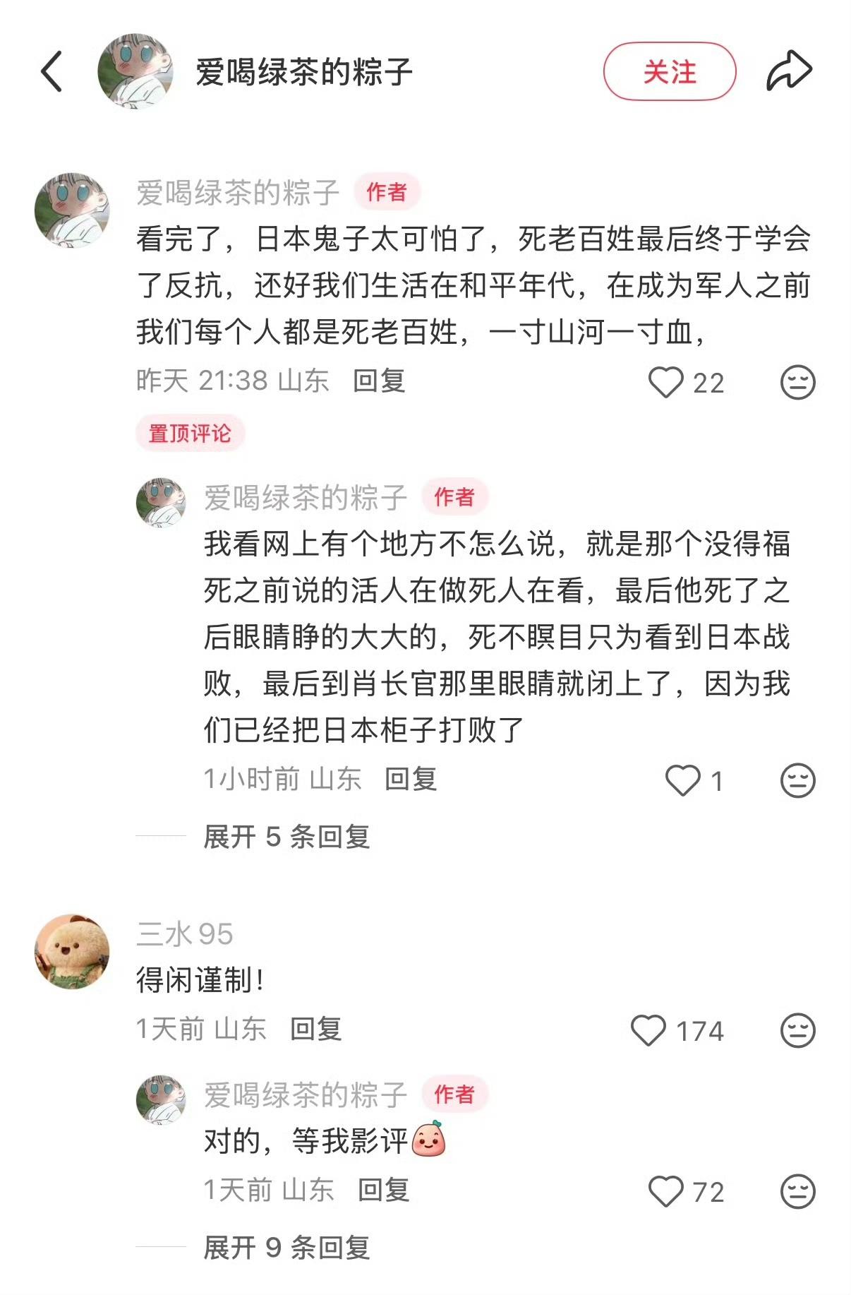 《得闲谨制》拥有一群高质量观众,解读能力一流,兰晓龙也说见识到了这届观众的厉害, 感觉喜欢肖战的人有好多都有很高的文学素养! 好的作品必须要有自我表达,拒绝假大空的东西,把小人物写好了才能和观众更好地共情,这届观众很聪明,相信观众的解读! 主创一聊到野生编剧的解读就滔滔不绝! 孔笙:观众对那个鞋子解读的很好! 兰晓龙:我喜欢鞋这个解读,当时写的时候我没去想,一看解读,一想来是这个意思啊对! 侯鸿亮:我一直是以为是兰晓龙这么设计的! 说到当年抗战时期一个情况,也是得闲谨制里戈止镇平静生活5年的原因。 249:就是大路边上的山上有那种很小的山村,当然人口不能多,路上就能看到,但是没有日军去扫荡村子,为什么,因为没有价值,对日军来说不值得爬1小时或半小时的山去特意杀,但是依靠没价值苟活下来的人会越来越懦弱。 发人深省啊! 但是为什么5年后有先遣侦察兵(3个日本兵)来呢,因为马上就是大战了,日军要攻打江防护了,这些周边的村子就需要荡清一遍,有了杀的价值。不过是待宰的羔羊而已,就像那个日本兵说的一样,我们没有杀你们,现在还没有! 兰晓龙的东西非常风格化,很魔幻,很跳脱,很难拍成电影,但,又有致命吸引力。老孔拿起又放下,最后还是拍了,用偏写实的手法将它落了地,魔幻+现实主义碰撞出的就是让你想哭又想笑的奇妙的荒诞感+悲凉。 影片中的老歌是兰晓龙写剧本时就提前备好的,不仅台词写得牛逼,连插曲都安排得那么绝妙,不愧是249呀! 说实话,这次肖战让人惊喜也让人赞叹。他和莫得闲的基底很像,简单、纯粹、专注、温暖、上进、有韧劲,他身上具备了大导名编们对于顶级演员的所有想象! 我们知道大银幕从不是流量偶像的避风港,反而会将演员的表演细节、情绪层次无限放大! 比如旗杆献祭名场面,莫得闲暗藏火药打造机关旗杆,试图与侵略者同归于尽时,脸上布满斗大的汗珠,面部肌肉因恐惧与绝望产生生理性颤抖,眼神从最初的决绝逐渐涣散,又在等待死亡的间隙保持着紧绷的放空,这种濒死前兼具心理战栗,正是普通人直面死亡真实状态。 可以说没有壮烈,只有等待肉身殒灭的惧怕与自我绷紧,却让生命的卑微与无助直击人心。 所以说,大银幕既是差演员的照妖镜,亦是好演员释放能量与表演可塑性的最佳舞台,而这次演员肖战,无疑证明了他属于后者!