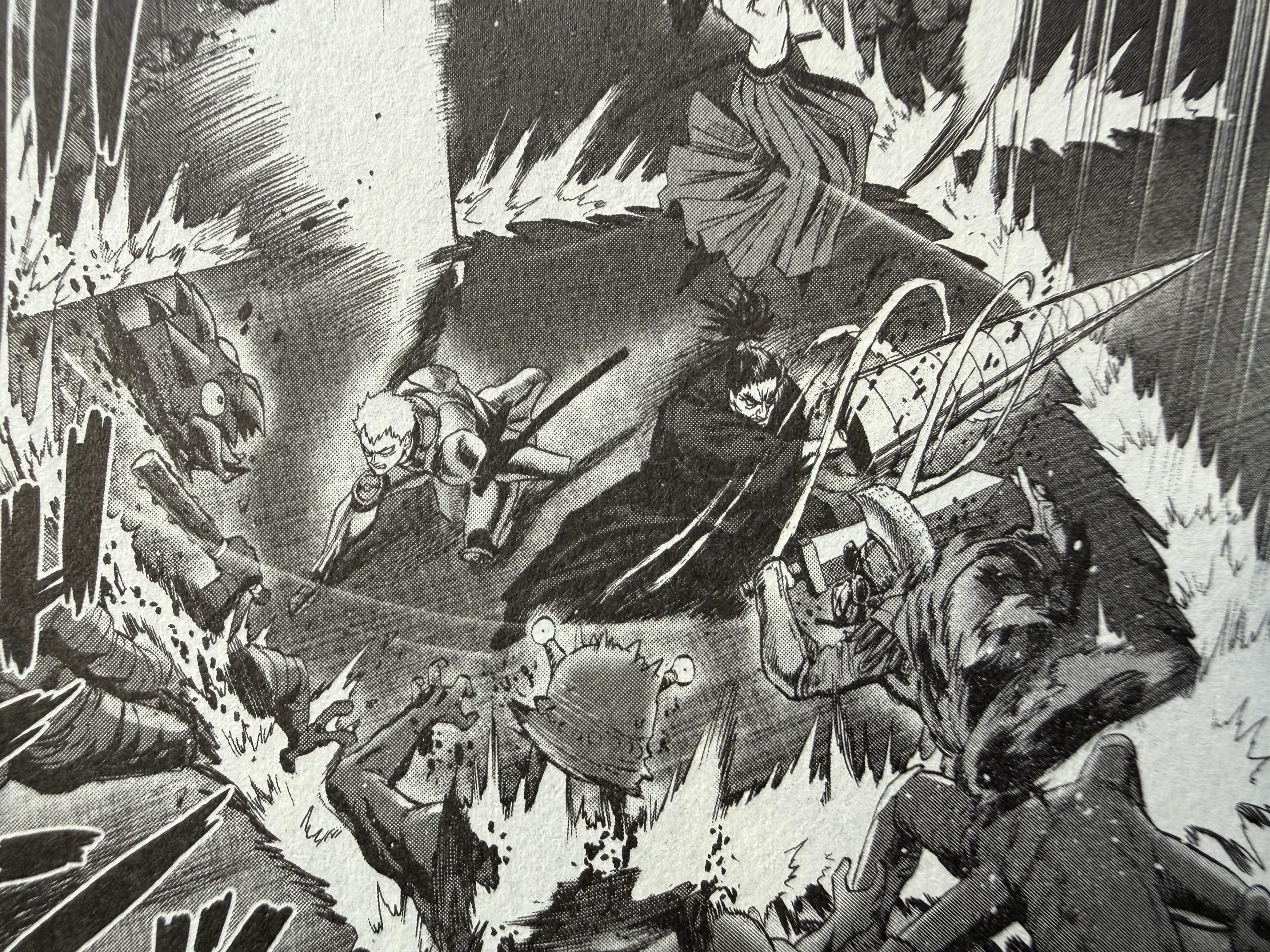 关于漫画。漫画中的这一话特别的好,虽然特战队都是非常边缘的配角但是刻画他们的打斗同样精彩,特别是姿态的张力和打击感的表现,这些可以说对比动画而言画面给人的视觉冲击力简直不是一个档次!漫画漫画家绘画笔记