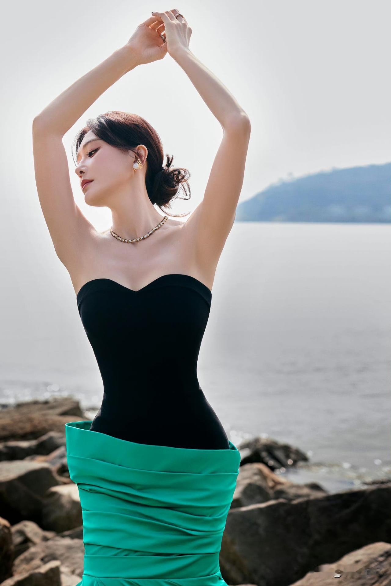 邢菲黑裙倩影:半明半昧抖落光尘,于无声处尽感秋意翩然