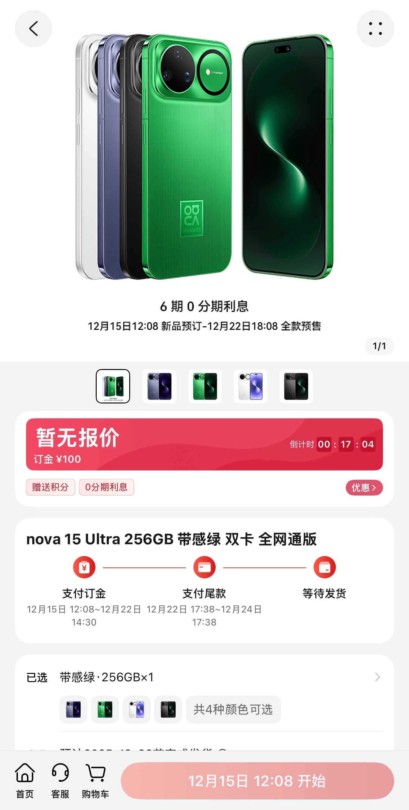 华为nova15全系开启预订今天12:08开启预售,主打色是绿色,史上最好看的nova,也是史上最薄的nova,你们准备好了么华为nova15外观曝光