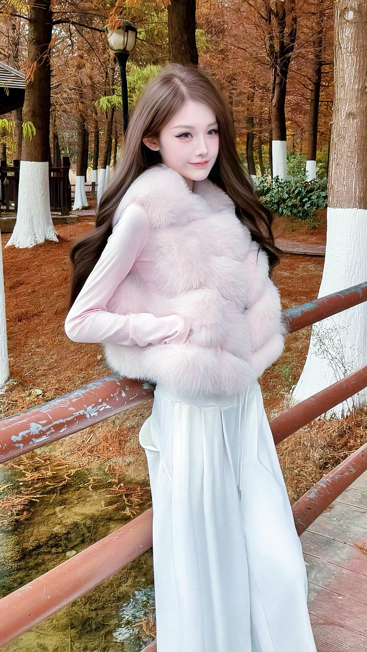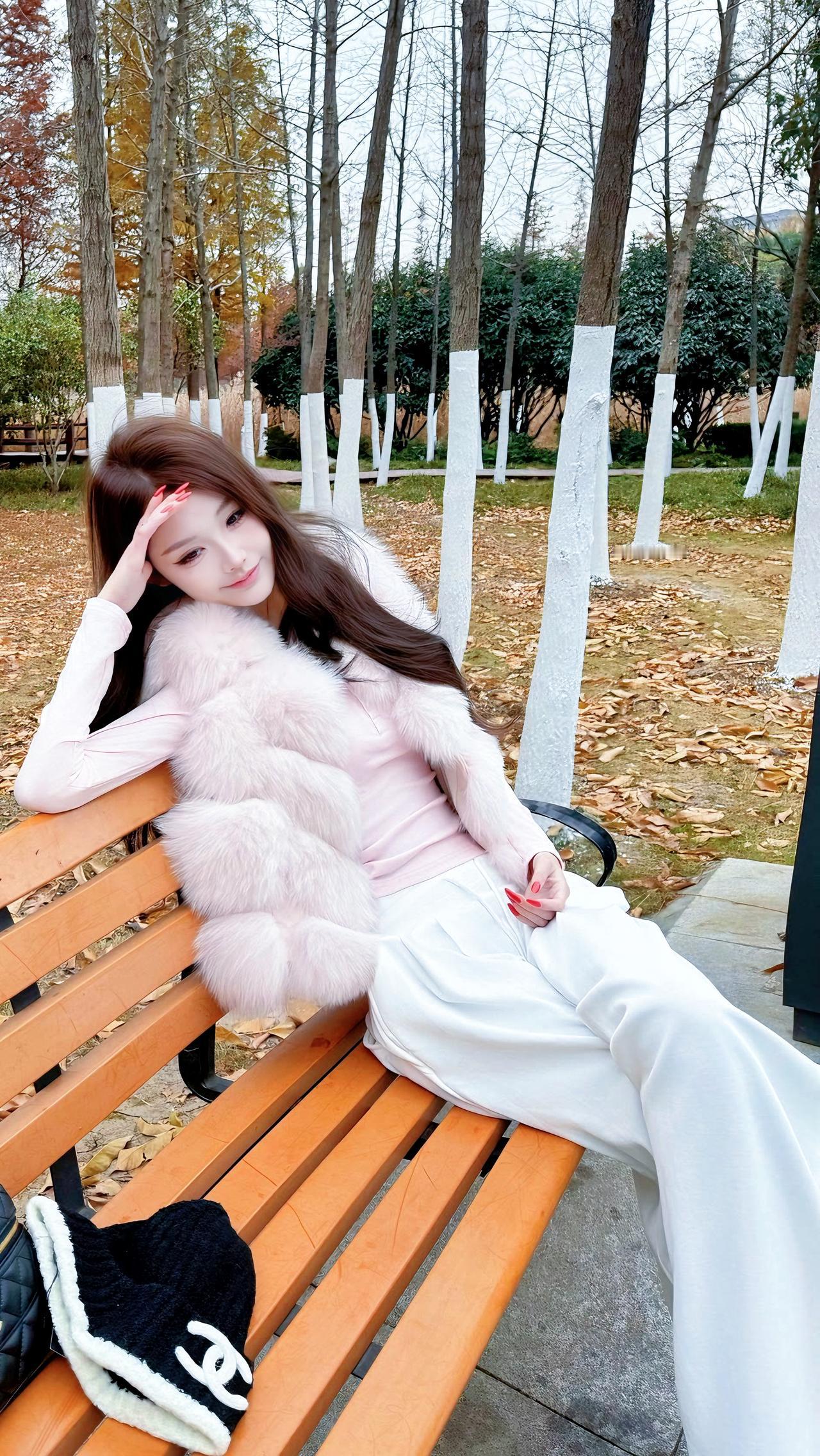 秋日漫步,粉裙飘飘,落叶相伴,唯美时光