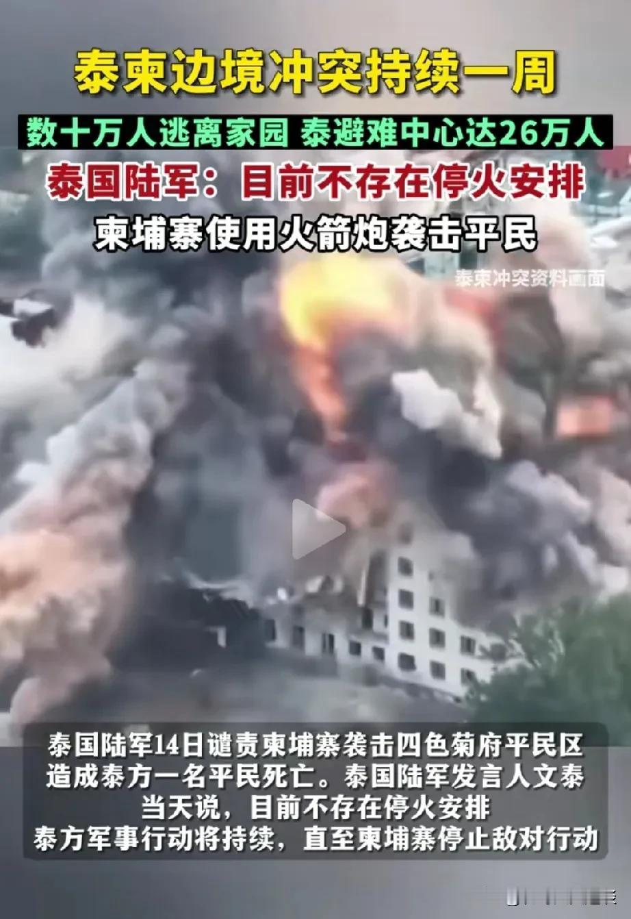这次泰国誓把简埔寨打废不可。开始简方不断叫嚣,泰方不示弱直接干。没几个回合,简方呼吁停火谈判。还找漂亮国调停,泰方不理会,继续干。马来西亚总统也呼吁停火谈判,泰方这次很牛,谁都不理,说最近没有停火计划,简方只有火箭炮。 泰方可不一样,他有轰炸机,可以深入对方腹地100公里轰炸,洪森一看不对劲,这样就被干废了,赶紧停火。这次泰方是让简方打的心服口服,别天天瞎逼逼。