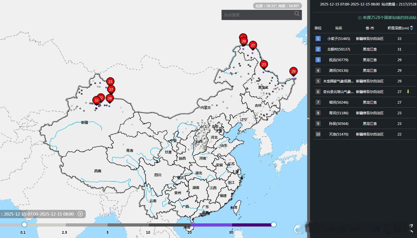【降水】昨天到今晨,新疆北部出现了较明显降雪,吉木乃、和布克赛尔出现大雪。吉木乃今晨8时积雪11厘米。另外在之前降雪的影响下,北方多地还有积雪存在。今后3天,新疆北部还有降雪,而在无雪的区域也要警惕积雪和结冰的持续影响。南方地区明后2天有南支槽发展,导致西南一带的阴雨会增多。