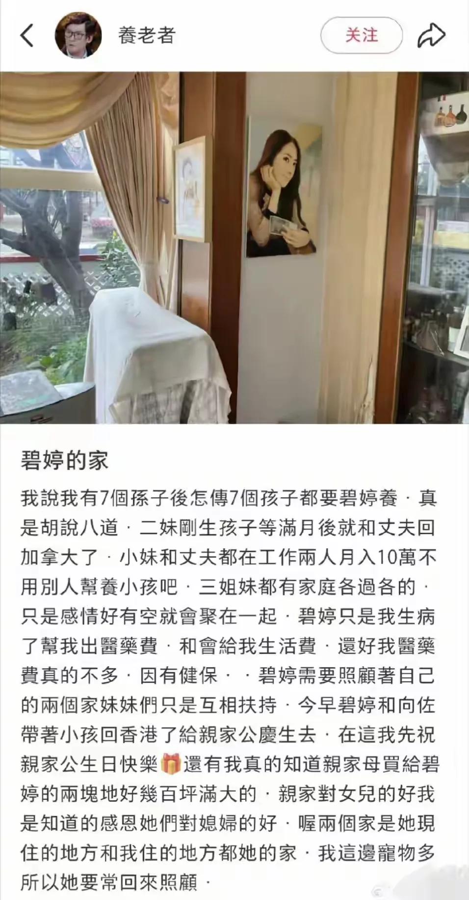 我挺替郭碧晨担心的 因为她有一个这样的爸爸 不是什么好事儿,规劝她爸少说话为好 个人觉得郭碧晨的爸爸应该务实,沉默一点,不要总在网上发文儿说一些有的没的,毕竟女儿是明星,婆家也是公众人物。 郭碧晨的爸爸与其在网上发文,制造一些动态引起上热搜,不如自己找一个擅长的赛道来打造自己的晚年生活。 他做的这些动态,担心会为郭碧晨带来不必要的麻烦,毕竟网上是舆论风口,万一哪一点说的不好,向太那么强,那个泼辣可不是好惹的,如果都在网上对撕起来就不好了。