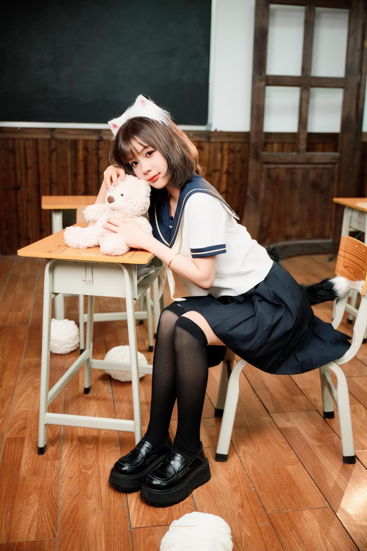 可爱萌妹,教室里与毛绒玩具的温馨时光🐾📚