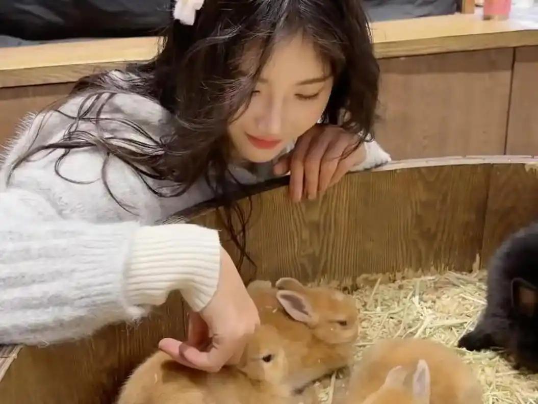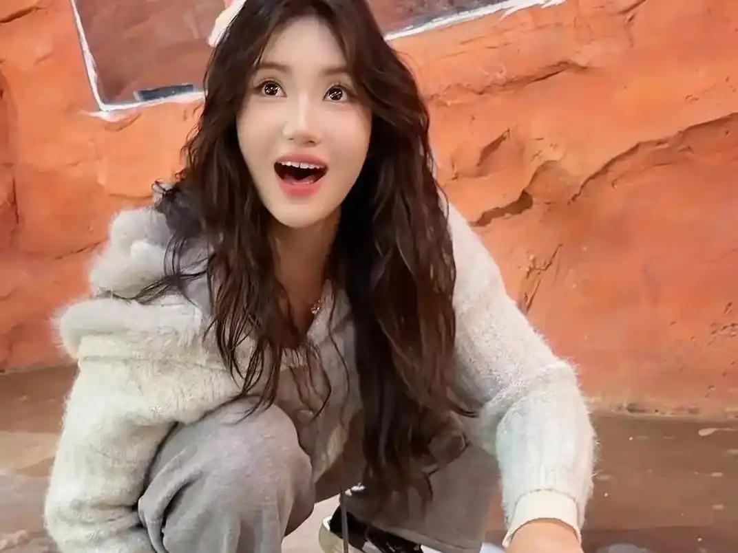 夏思凝打卡上海动物园,穿米色毛衣外套搭配波浪卷,颜值不输女星