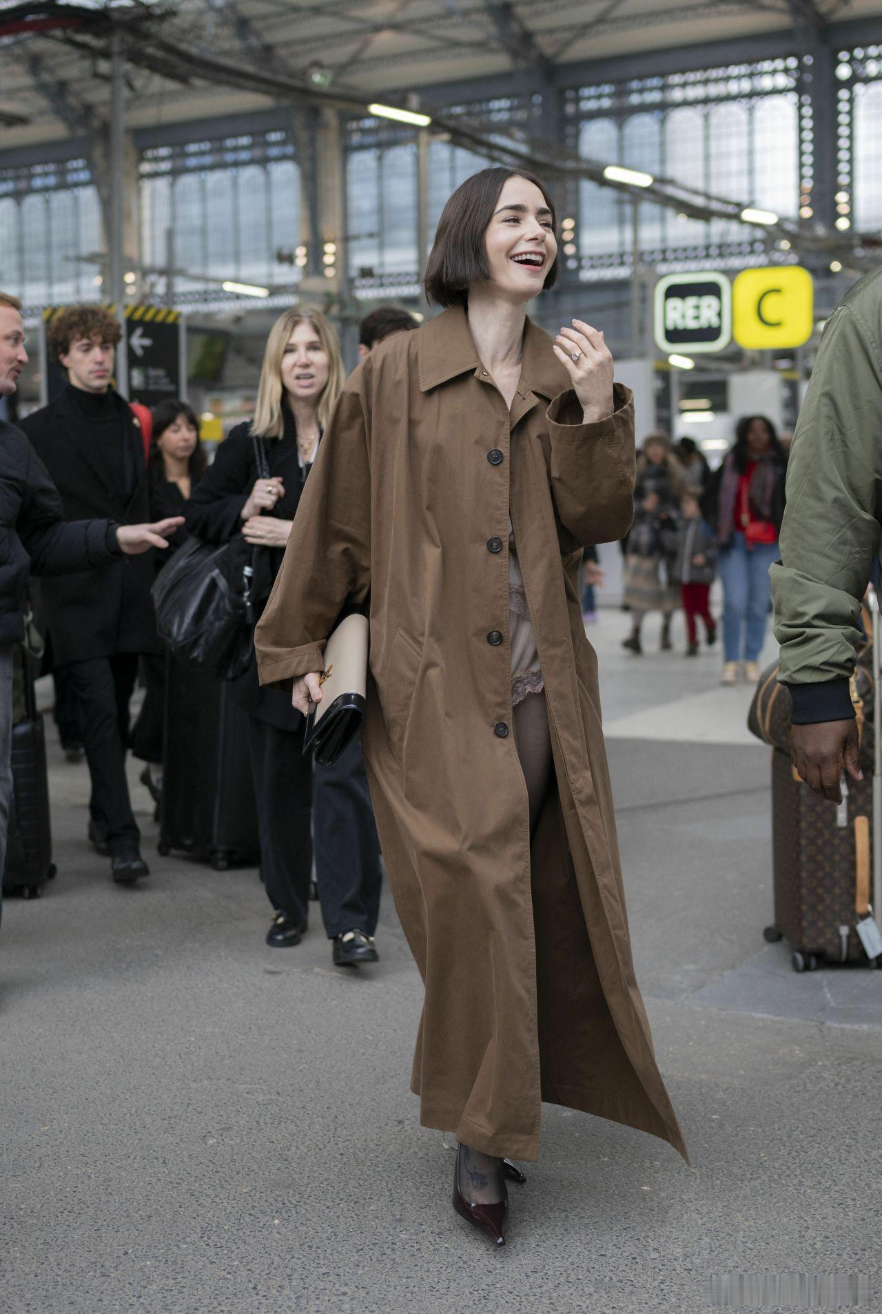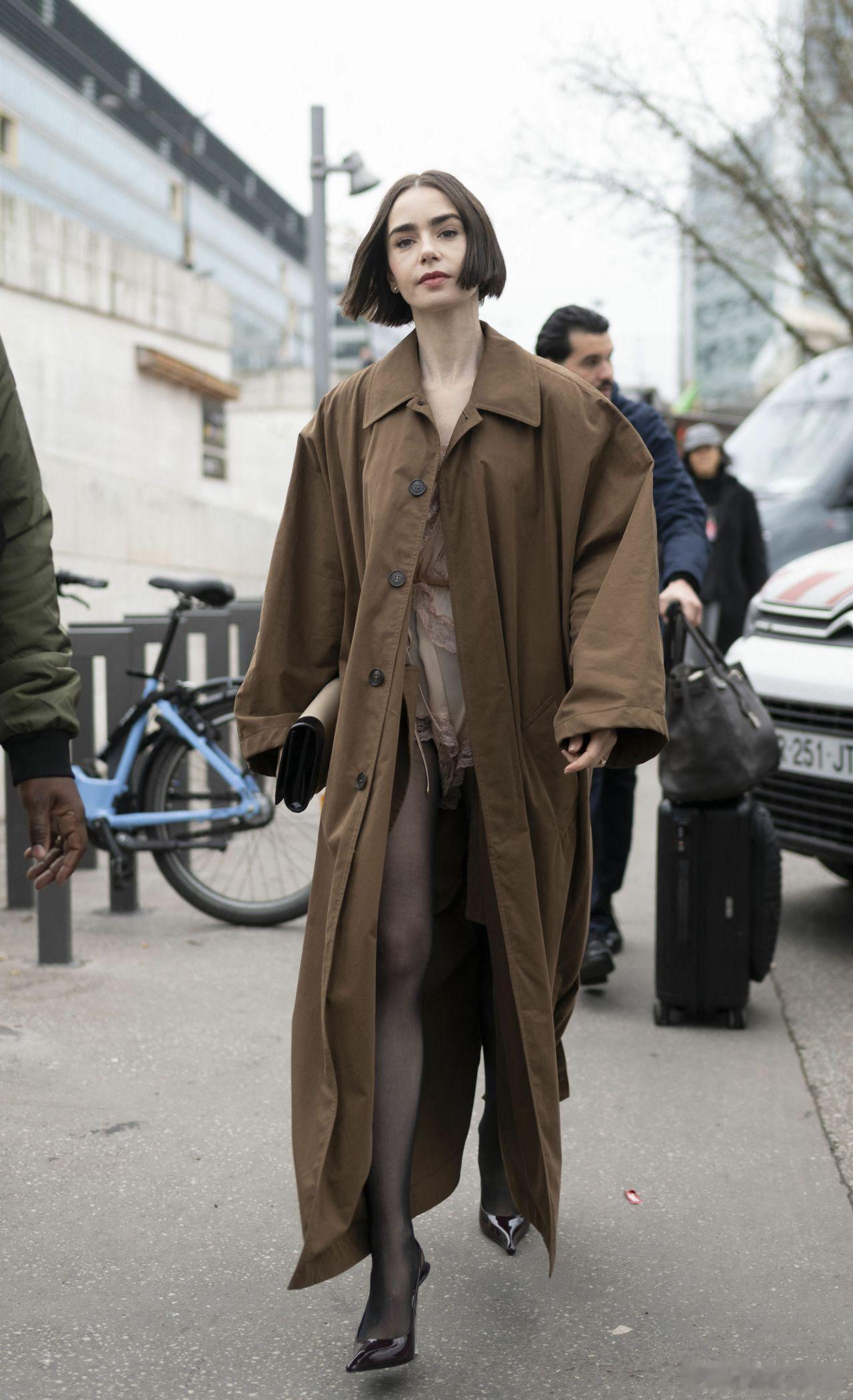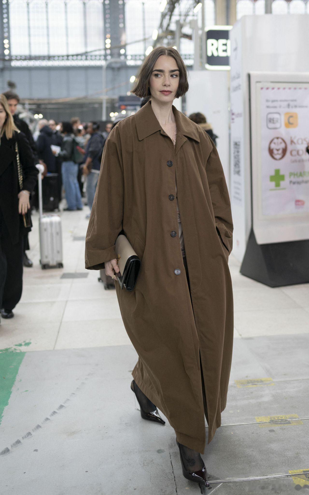 Lily Collins昨日和《艾米丽在巴黎》剧组出现在巴黎奥斯特里茨火车站,她穿了 Saint Laurent 的风衣内搭真丝雪纺连体衣,实用的外套与轻薄透明、镶有蕾丝边的内搭形成鲜明对比,这种刻意营造的张力既大胆又充满挑逗意味。时尚灵感解读