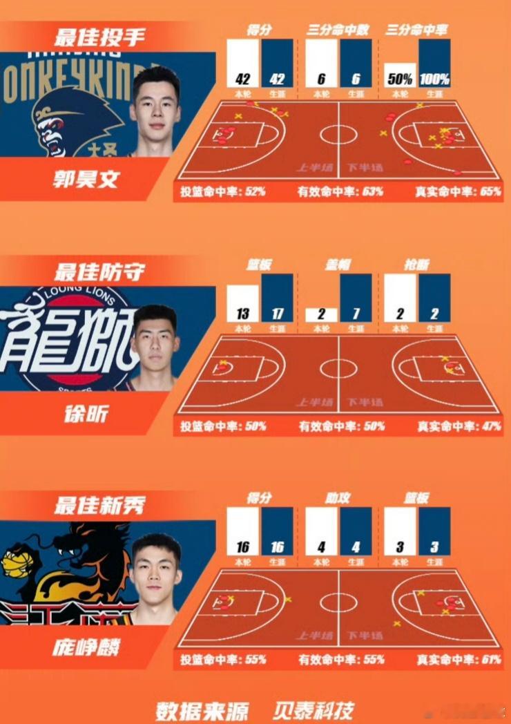 CBA公布第一轮最佳阵容,萨林杰19分9篮板入选,徐昕13篮板2盖帽2抢断斩获最佳防守奖