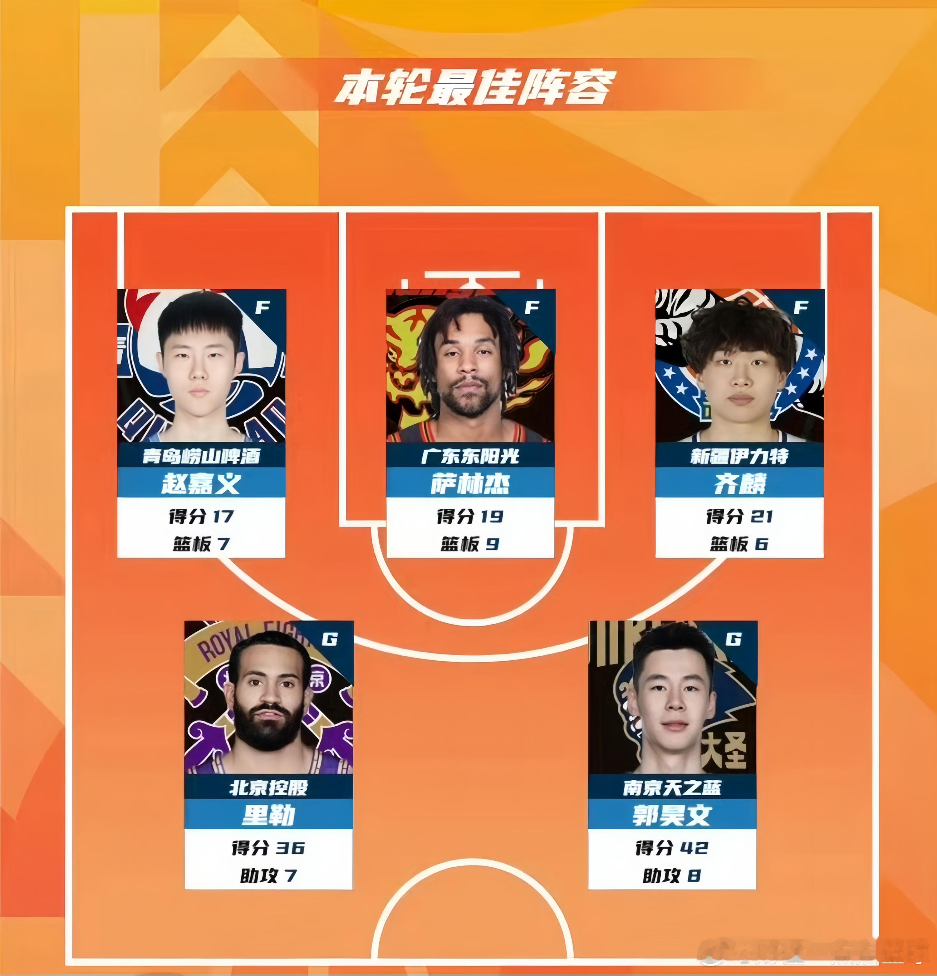 恭喜广东宏远男篮大外援萨林杰入选CBA新赛季常规赛第一轮最佳阵容!昨晚广东男篮对阵南京同曦男篮的比赛中,出战24分34秒,拿到19分9板4助攻,效率值拉满了!