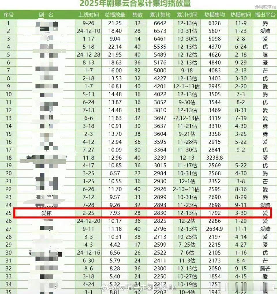 张凌赫《爱你》登顶爱奇艺2025现偶集均第一,今年最长尾的现偶