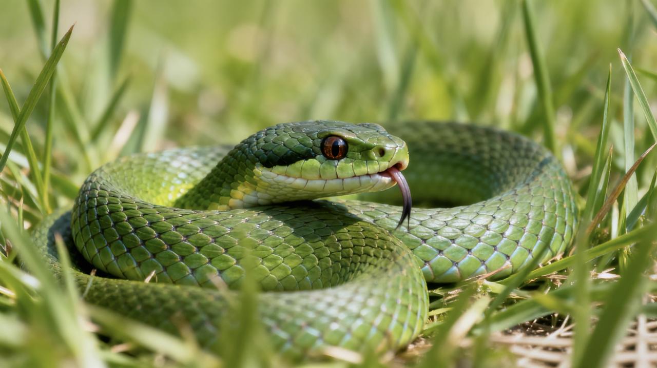 蛇总是安静地盘踞在草丛里,吞吐的信子感知着周遭的温度与气息。它蜷起身体时像一截枯