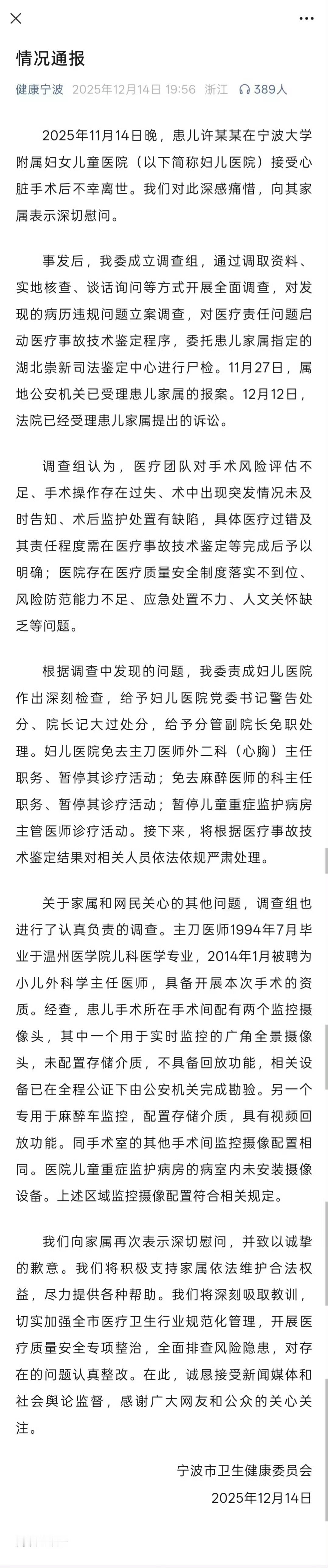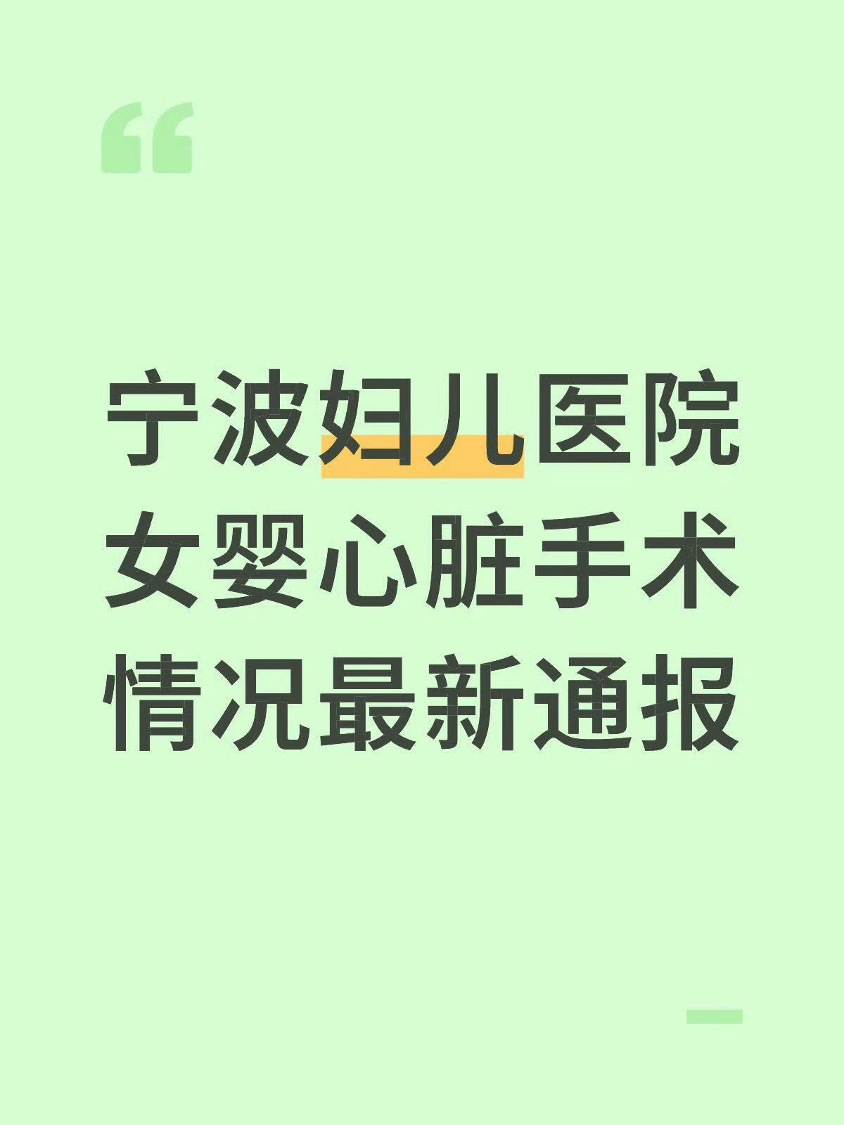 宁波妇儿医院女婴心脏手术情况最新通报 宁波妇儿医院女婴心脏手术情况通报📅时隔一个月宁波卫健委发通报了和你预想的差不多吗?