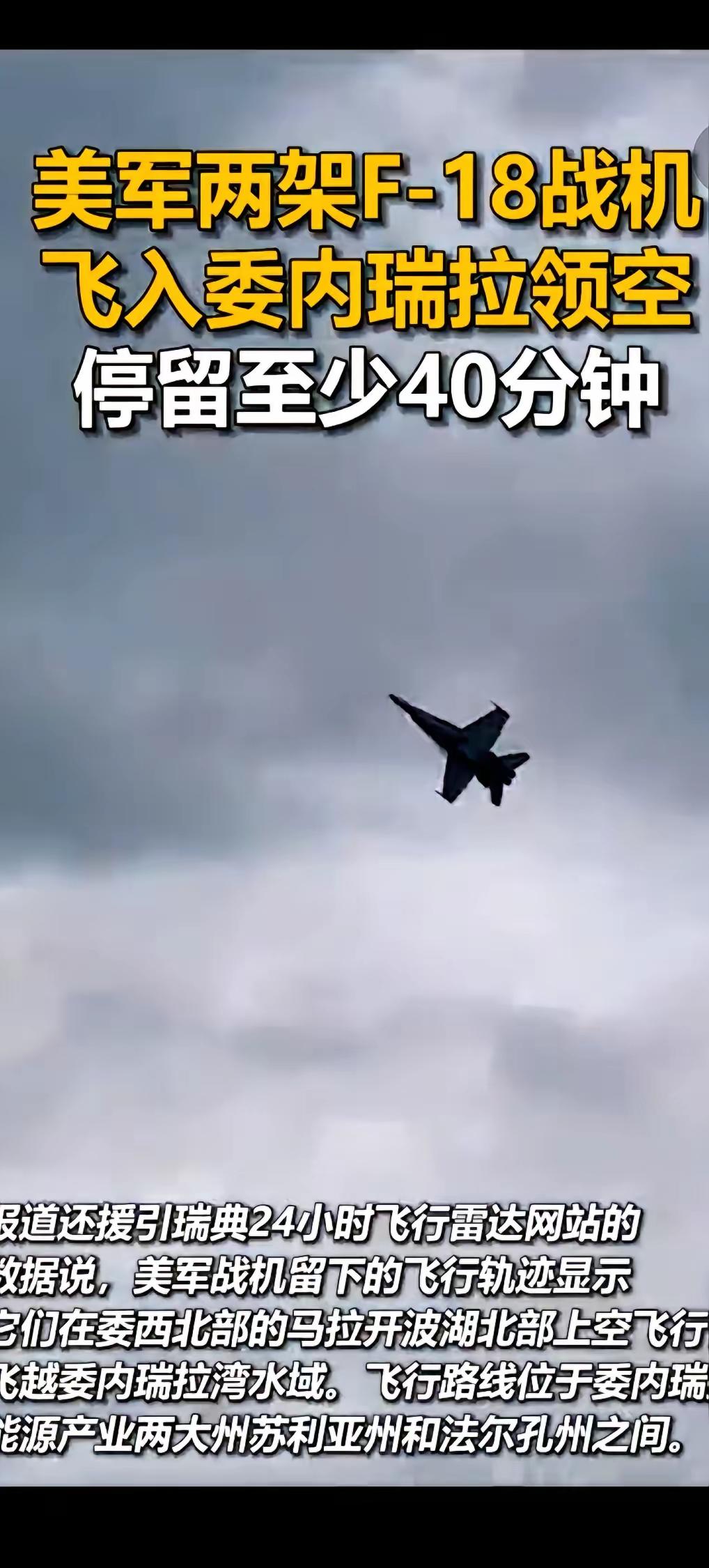 家人们,惊掉下巴!美国两架F-18战机竟堂而皇之飞入委内瑞拉领空,还大摇大摆待了整整40分钟!导弹锁定、发射按钮近在咫尺,按还是不按?这抉择太难了。按,国家发展可能一夜回到解放前;不按,国家颜面何存?这就是美国擅长的阳谋,欺负人家有石油,还和自己“对头”走近。 委内瑞拉这次忍了,这可不是怂,是成年人的清醒,知道冲动只会掉进陷阱。但咽下这口气,必然会拼命加强国防。美国这种霸凌行为,只会把人越推越远。世界早已不是靠蛮力称霸的时代了,这么搞简直是给自己培养对手。大家觉得,美国下一步还会搞出什么幺蛾子?