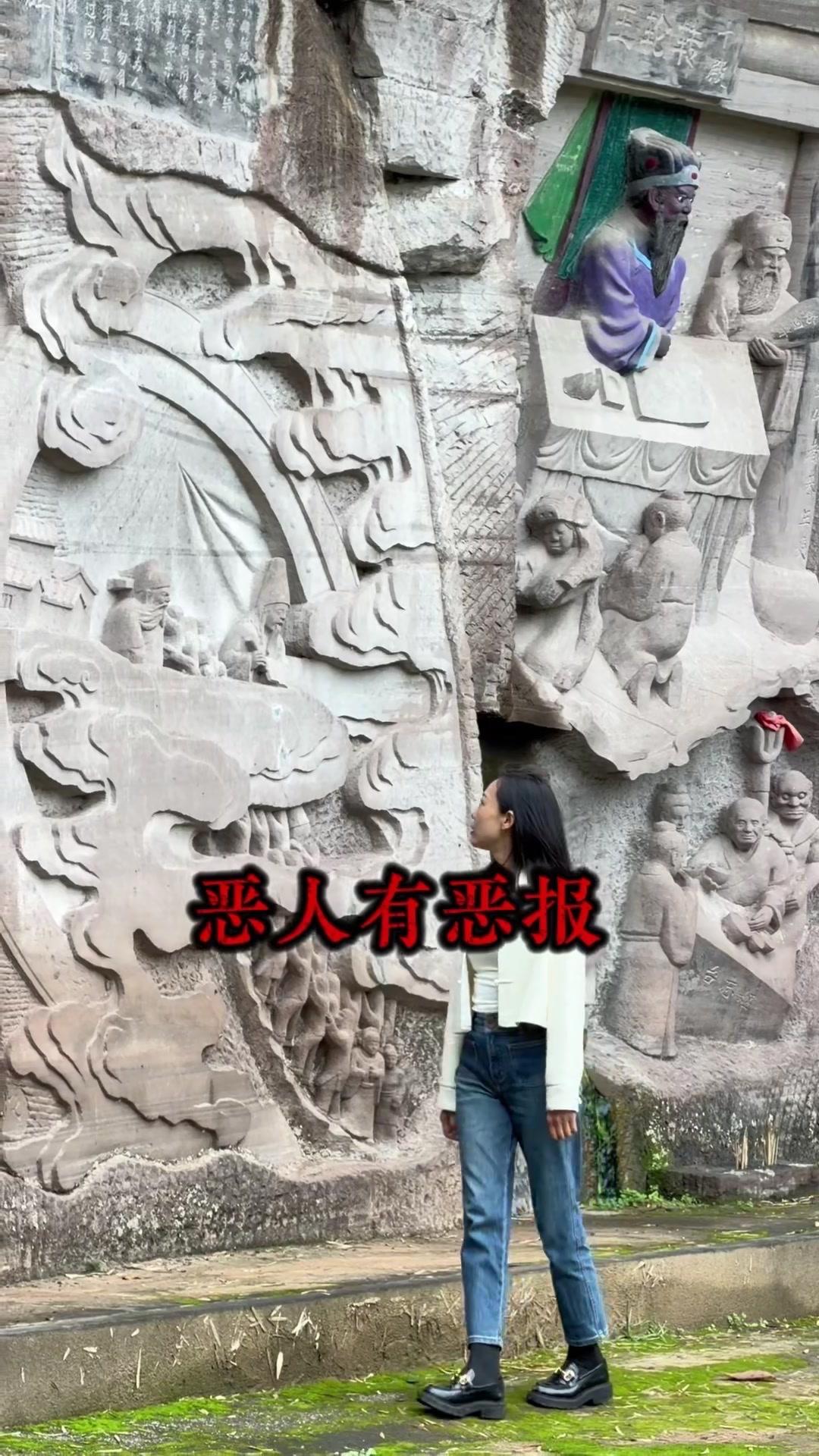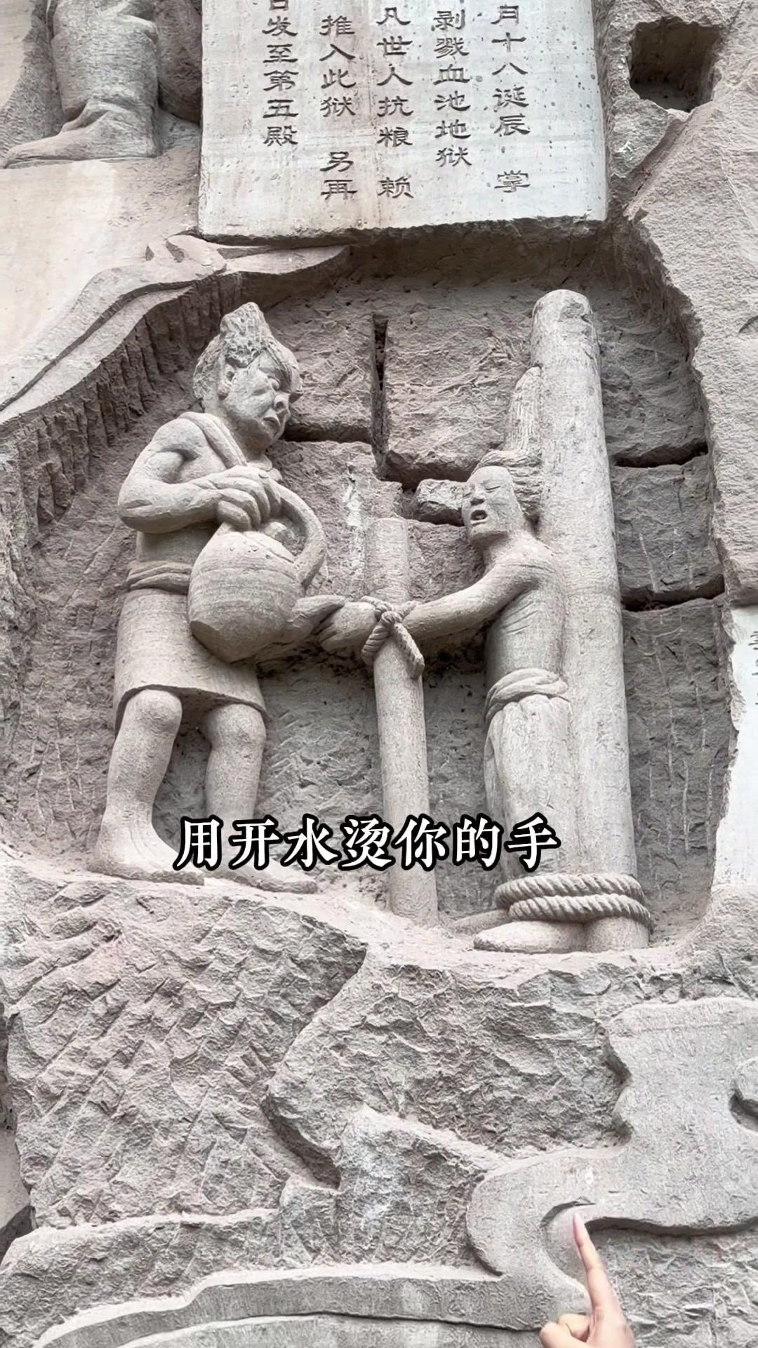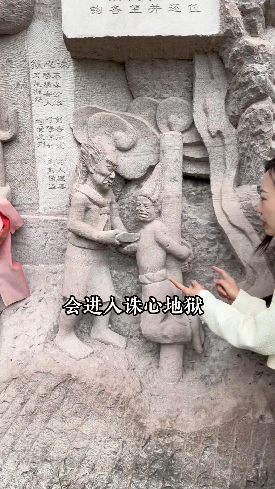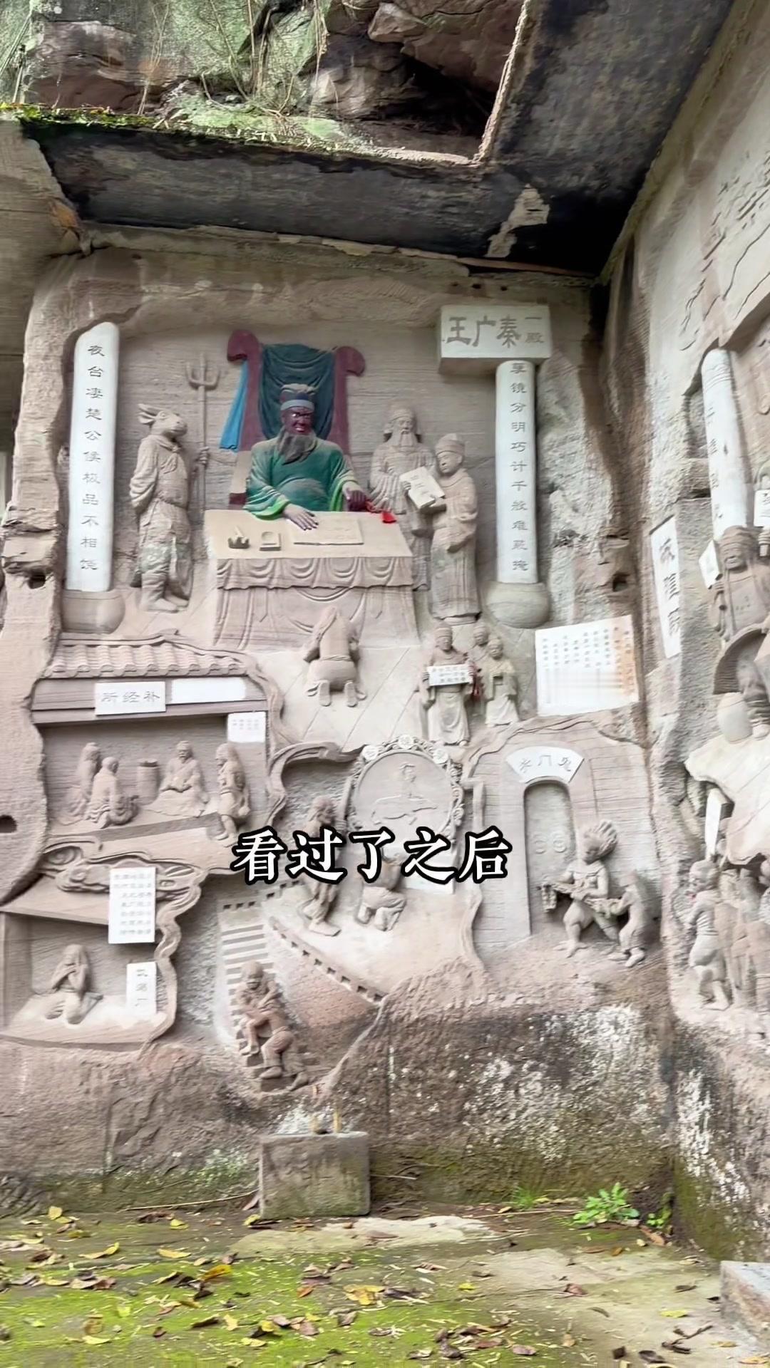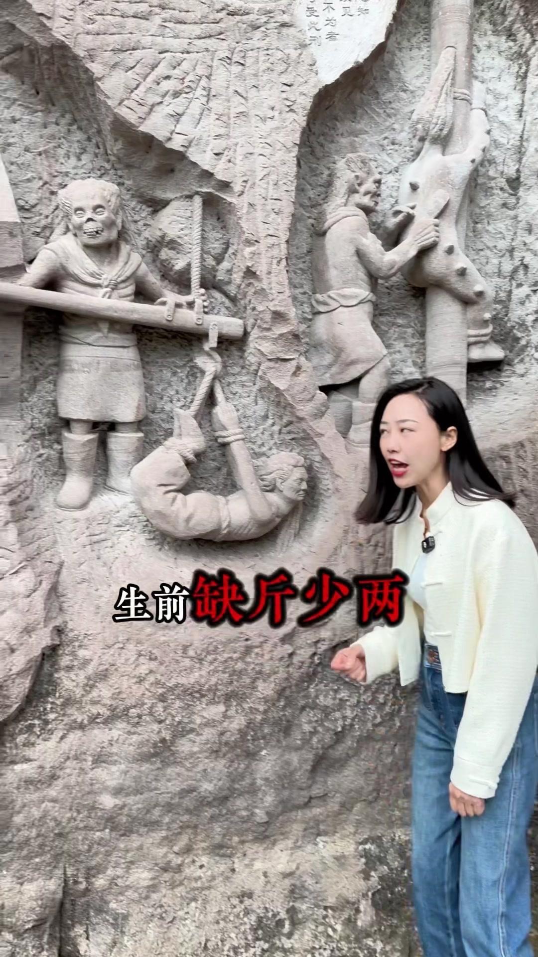 重庆大山里的"阎王殿"也太震撼了!在重庆大足的大山深处,藏着一处让人脊背发凉的摩崖石刻——传说中地府的"阎王殿"。没人知道是谁在什么时候开凿了这里,只听说见过的人晚上都会做噩梦,胆大的一定要来打卡! 走进这里才能感受到古人的想象力有多丰富。阴阳界的牛头马面、能照善恶的照妖镜、审判罪人的阎王殿,每个场景都刻画得栩栩如生。最让人印象深刻的是各种酷刑的雕刻:缺斤少两的人要被称一称,造假的要被开水烫手,没孝心的会被扔进诛心地狱,心肠恶毒的甚至要被乌鸦啄食心脏...每种刑罚都对应着生前的恶行,看得人不寒而栗。 不过这些恐怖的雕刻,其实是想告诉大家一个简单的道理:善恶终有报。登上望乡台看最后一眼家乡,喝一碗孟婆汤忘记所有恩怨情仇,不管是好人还是坏人,最终都要为自己的行为付出代价。 这里不是单纯的恐怖景点,更像是古人用信仰留下的警示。来这里走一趟,真的会明白"多做善事"这四个字的分量。