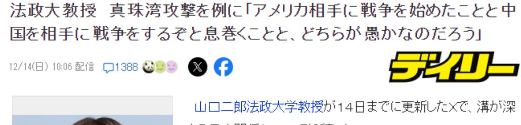 日本学者痛批:高市早苗比二战更蠢,正把国家推入火坑 有个叫山口二郎的言论,在日本社会激起了千层浪,这位是知名学者,公开将当前对华政策,与二战时的错误决策相提并论,还直言其“愚蠢”,瞬间就引爆了舆论场。 近年,右翼政客高市早苗时有诸般动作,已化作日本政坛显著标志,她屡屡参拜靖国神社,且于历史事项上发表存有争议语论,其推进修宪扩军之议程引致诸多忧虑。 她所提出的,那种“台岛有事就是日本有事”的论调,被观察家视作是对地区稳定的一种挑战,这一系列行为,被批评者指认是在复制危险路径,会把日本推向战略困境 。 日本经济有着脆弱性,此脆弱性于供应链危机里被全然暴露出来,2023年中国对稀土出口政策作出调整之后,日本的汽车产业以及电子产业马上遭受到冲击,像丰田这样的巨头不得不去调整生产计划 。 日本在能源以及贸易运输方面严重依靠经由关键水道的途径,这条作为其生命线的水道一旦遭受干扰,那么日本的经济将会在极短的时间范围之内陷入止滞状态,而这种依赖属于日本根本无法回避的战略现实情况 。 山口二郎说起了珍珠港事件,目的在于警醒历史再度出现相同情况。1941年那次军事方面的冒险行为,最终把日本给带进了灾难之中。当下,一些政客所发表的言论,被指责正在鼓动类似的缺乏理性的情绪。 现今日本社会可不是完全一致毫无差异的,根据民意调查所呈现的结果来看,大多数的企业以及民众对于那些激进的行动内心是怀有警惕之意的。这跟二战之前那种全民都被带动起来的氛围相比,已经存在很大的不同之处了。 高市早苗等一些人把日美同盟当作绝对的能够提供保障的存在,然而过往的历史经验显示联盟关系是充满着变化不定的因素的,美国在印太战略方面所进行的布局,一直是以它自身的利益作为优先要考虑的方面的。 要是日本不加思索地充任前沿棋子,那就有可能遭遇被牺牲掉的风险,这种在战略方面呈现出的依附性,反倒极有可能致使日本自身的长期安全以及外交自主遭受削弱 。 山口二郎所做出的发言,体现出了日本的学界内心深处的忧虑,并且在网络这个平台之上引发了极为激烈的论战,对于支持以及相反于扩军路线的不同声音相互开展碰撞,进而显示出社会呈现出严重的分裂状态 。 曾经,安倍政府促使安保法案推行之际,引发了街头抗议活动,参与人数达数万人规模。当下,反对军事冒险行为、声索专注民生与经济发展的响声再次汇聚到一起。 被理性的声音所指出的是,日本的未来在于跟邻国构建起稳定务实的关系,并非对抗。上世纪九十年代存在的“谢罪外交”,曾给日本争取到发展空间,这一历史经验是值得去深思的 。 那些挑衅周边、自断后路模样的政策,并不契合日本民众内里的根本利益标准。而坚守和平宪法这一行为做法,借助对话去解决分歧所在之处,才可看成是对国家前途负责的真正有担当意义之选择说法。 您觉得,针对山口二郎那尖锐的警告,以及高市早苗那激进的路线,哪种观点更能代表日本未来的理性指向呢?欢迎于评论区分享您的看法。