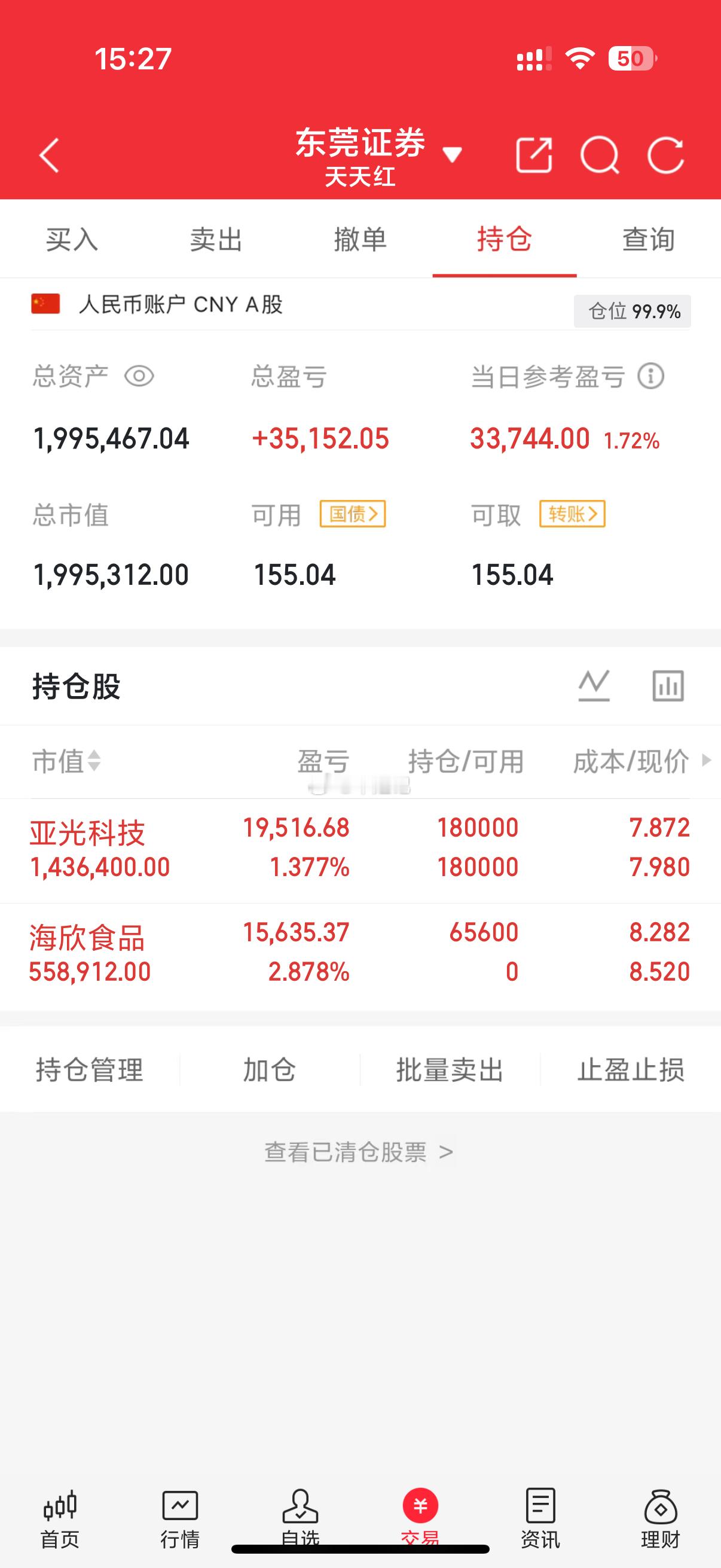 100w本金记录到300w(第143天)今日持仓票:亚光kj、海欣sp今日总资产