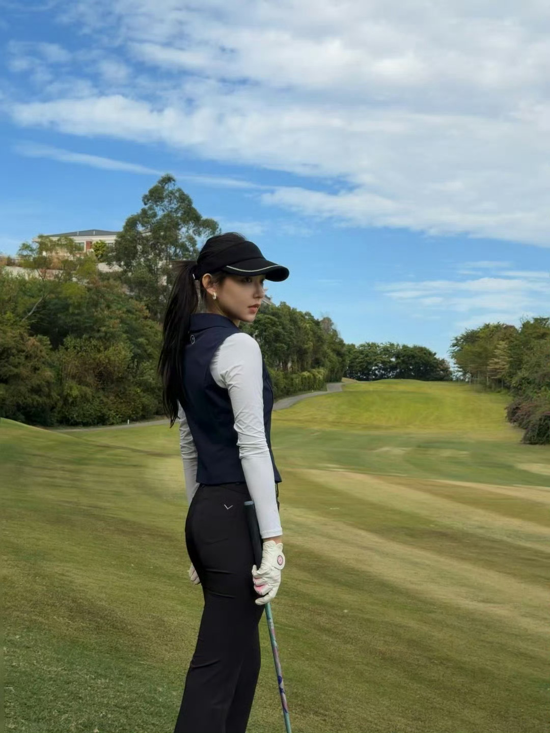 程潇又来打高尔夫啦,学姐你好甜!!!多扎高马尾好吗