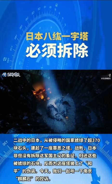 玉渊潭天呼吁拆除八纮一宇的视频已是热点! 但还有一尊血观音像更该被销毁。 它是南京大屠杀制造者松井石根用浸满南京民众鲜血的血泥与日本紫泥塑造的一尊观音像!面朝南京,意寓永生永世镇压30万亡魂,镇压东大国运! 相比于南京大屠杀,七七事变靖国神社这些广为人知的事件外,知晓这个塔的应该是寥寥无几吧。日本军国主义不仅对中国人民犯下了滔天罪行,还在其国内兴建了这样一批建筑物。实在可恶! 我们不仅要祭奠逝去的生命,更要追索流失的尊严。“八纮一宇”塔不拆,日本的反省就是一句空话。麒麟石不回家,南京的伤口就永远无法愈合。 坚决要求追回麒麟石,绝不放过日本军国主义! 拆这塔必须要中国人亲手拆除,并举行祭祀仪式,在靖国鬼社遗址上建镇妖塔!中国在南京塑造一个面向日本的日本国王切腹谢罪的雕像,以此呼应! 应该把这些罪证收集整理,系统列入教材,让我们的子子孙孙永远不要忘记这段历史!出国旅游留学的,提前进行这方面的教育,不然不知道有多少中国游客把这个塔作为打卡地拍照留念!