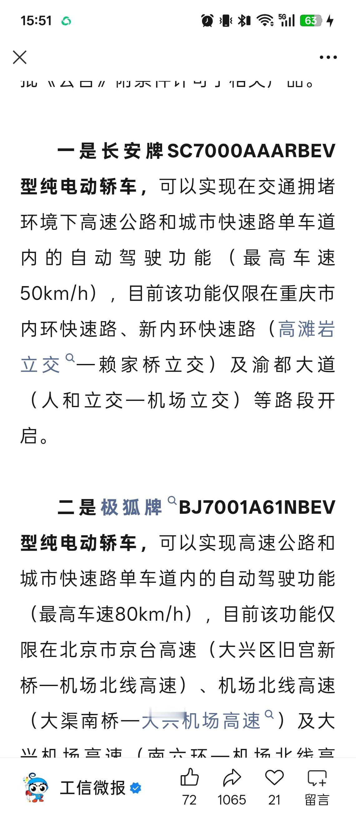 我国首批L3自动驾驶车型获准入许可关键词:两款车型、重庆和北京、纯电轿车、50公里高快,80公里高快。所以能猜到是两家车企吗?重庆有赛力斯、长安;北京有北汽、小米… (图二真相大白了)