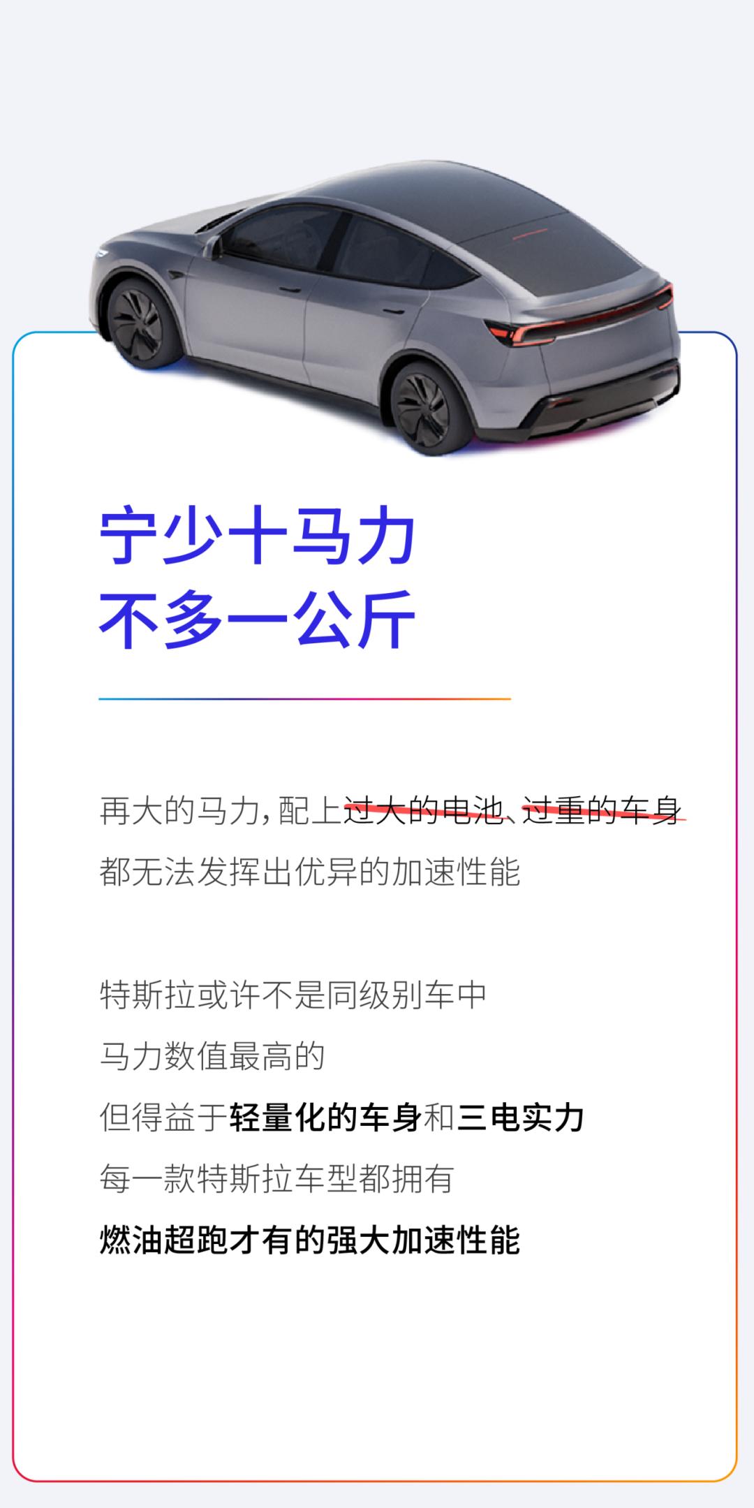 选电车时总被大电池参数吸引,却发现实际续航没达标?动力数据亮眼,开起来却笨重无力?其实车重才是影响电车核心体验的关键!就像特斯拉一直践行“宁少十马力,不多一公斤”的理念,过重的车身会让大电池、高马力都白费,还会导致载重缩水,而科学轻量化才是解决之道。💡 特斯拉靠钢铝混合车身、一体压铸工艺、高度集成的三合一电驱系统等硬核技术,让Model 3长续航后驱版整备质量仅1760kg、能耗11kW·h/100km(CLTC),Model Y长续航后驱版整备质量1891kg、能耗11.2kW·h/100km(CLTC),均达到同级超轻车重+超低电耗水平。根据EPA测定,Model Y后轮驱动版(18英寸轮毂)每度电可行驶约6.944公里,同样开20万公里,相比1度电只能跑5公里的新能源SUV,充电费用能省约1.6万元,这些钱还能再开7万公里,既省钱又省心。而且轻量化不是偷工减料,反而能带来更强的加速性能、更优的载重和空间,安全性也更有保障。 你选电车会关注车重吗?聊聊你的选车小技巧~🚗【来自懂车帝车友圈】