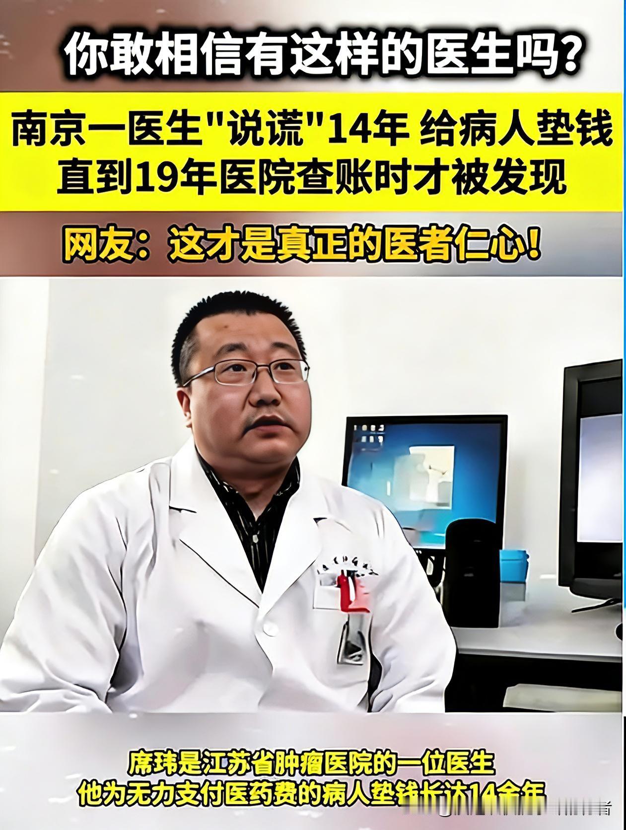 审计组查账查出个“穷医生”! 50万工资散给病人,自己皮带断了粘粘再用 审计组进驻医院查账,本是冲着“打老虎”来的,没成想翻遍南京医生席玮的账目,没见半分灰色收入,倒查出一本让人哭笑不得的“穷账”,估计审计组的人都得懵:这账,咋跟预想的完全不一样! 谁也没想到这位医生的脑回路和常人完全不一样。2014年,他悄悄把自己攒下的50多万工资,一分不留分给了287个贫困病人。怕直白的帮助伤了病人的自尊,他还特意编了个“基金会补助”的谎话,这些事,他从没跟同事、家人以外的人提过一句。 再看席玮自己的日子,过得那叫一个“寒酸”:腰间的皮带断了,舍不得买条新的,粘一粘继续系;一家三口挤在老城区的小房子里,家具还是结婚时的旧款;妻子的睡衣穿了好几年,袖口磨破了,上面还打着补丁。 现在这世道,多少人围着“几两碎银”算尽心机,稍微帮人做点事,恨不得拿大喇叭站在街头吆喝。席玮倒好,把自己活成了别人眼里的“傻子”,却用这份“傻”,狠狠打了那些精致利己主义者的脸。 他不是不懂世俗的规则,也不是不需要钱,只是选择了另一条难走的路——把医生的“仁心”,刻进了骨子里。网友说他是“活菩萨再生”,其实他哪是什么菩萨,只是守住了医者最本真、最纯粹的模样。 我自认做不到他这般无私,面对生活的琐碎,也会为了柴米油盐计较,但我打心底里敬仰席玮医生的这份纯粹。 在欲望横流的当下,他这样的“傻”,从来不是笑话,而是我们这个社会最稀缺、最珍贵的光。 医者仁心席玮 最“穷”的好医生席玮 南京席玮医生