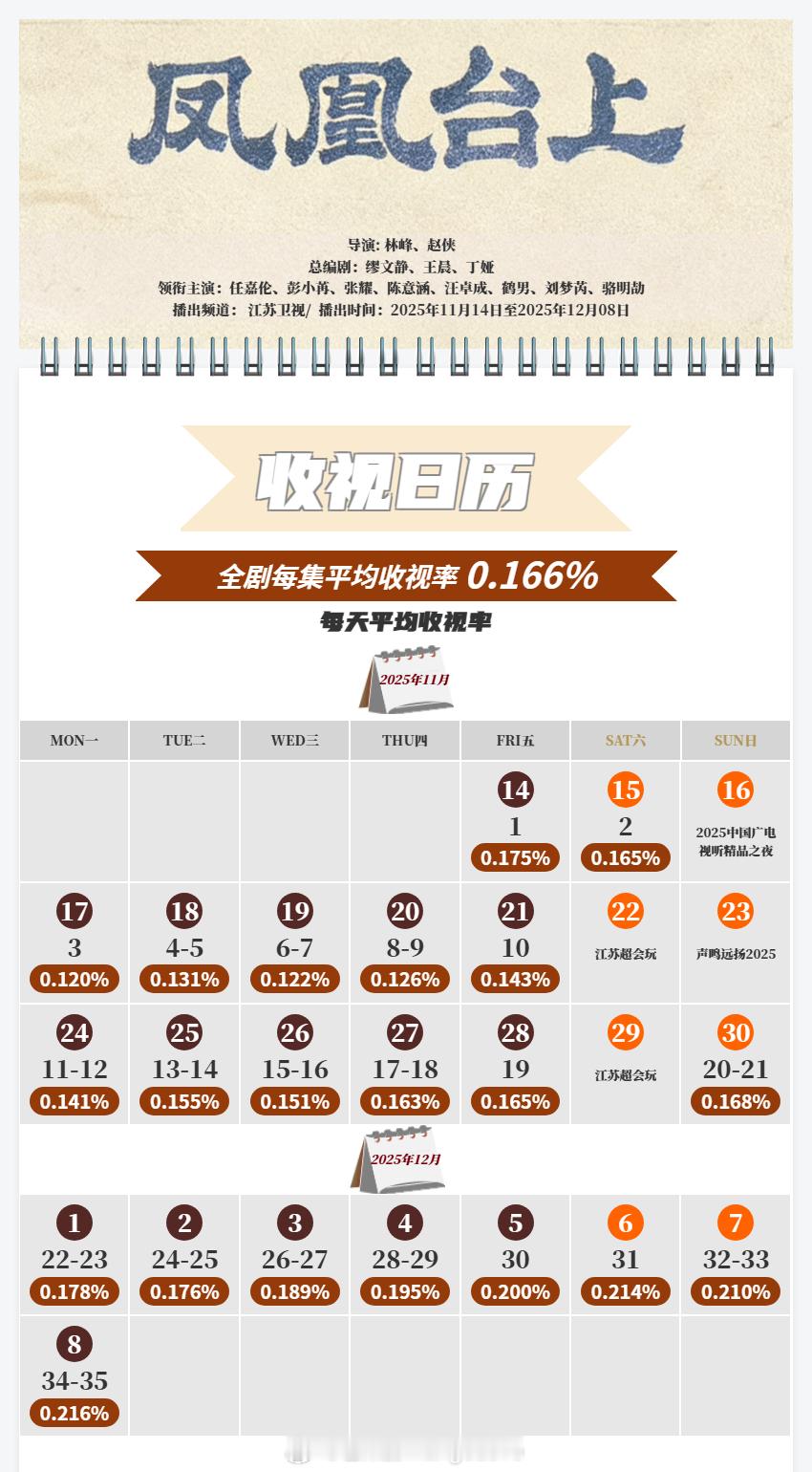 中国视听大数据CVB收视日历胡先煦 / 周依然 / 何蓝逗 / 加奈那 / 李乐 / 黄婷婷 即刻上场 平均收视率1.176%,最高单日1.401%(央八完结剧年度第二十一名) 任嘉伦 / 彭小苒 / 张耀 / 陈意涵 / 汪卓成 / 鹤男 / 刘梦芮 / 骆明劼 凤凰台上处 平均收视率0.166%,最高单日0.216%(江苏卫视完结剧年度第八名)