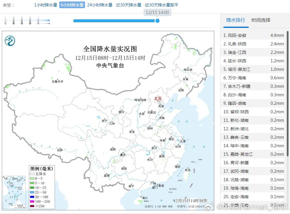 【晴朗干燥】今天我国大部地区天气晴朗,降水稀少,1毫米就能排到6小时降水榜前5,0.2毫米就能排到前10。而且12时、13时、14时单小时降水榜,又凑不齐10个。今天下午江南部分站点,相对湿度不足30%,甚至更低。比如江苏南京24%、浙江新昌18%、安徽黄山(光明顶)9%。今天下午到明天中午,我国降水依然不多,新疆北部和西部局地有大雪。