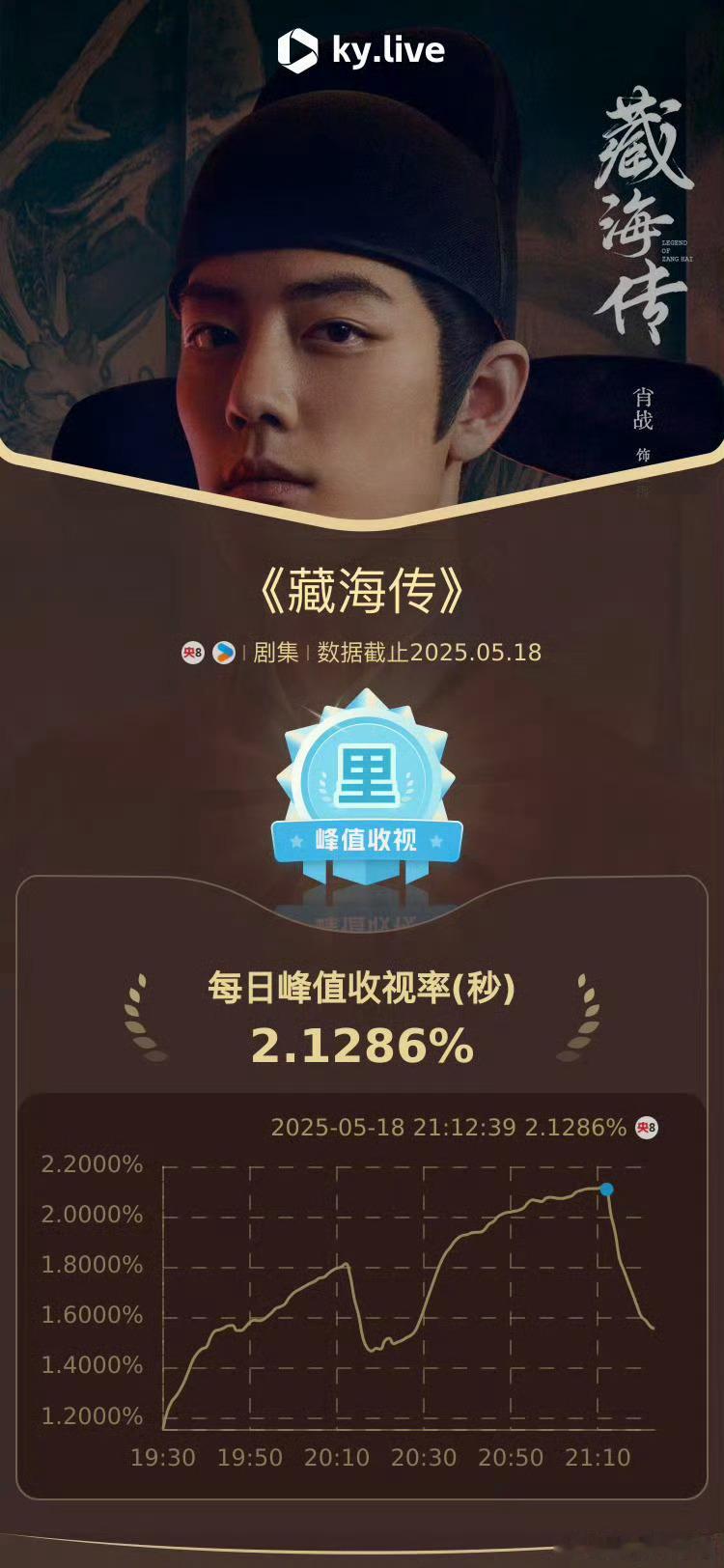 我发现成毅粉丝真的很好被脂粉骗,他们连酷云数据都不会看,藏海传这个酷云的走势就是特别好的,接了低盘,然后一路上涨,她这个截图半小时从1.1涨到了1.6,第一集的最后落在2.1286,这就是吸引并留住了观众的走势