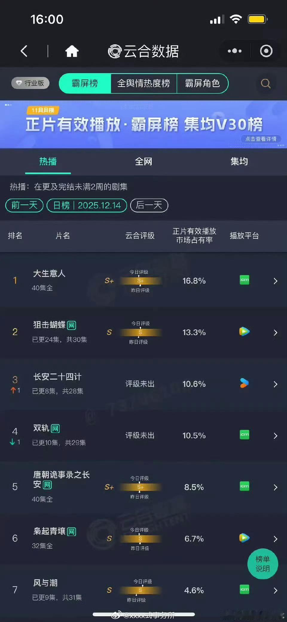 云合热一是长安二十四计云合反超双轨 这两部剧声量太大 搞的就这两部剧播一样只看得到它俩