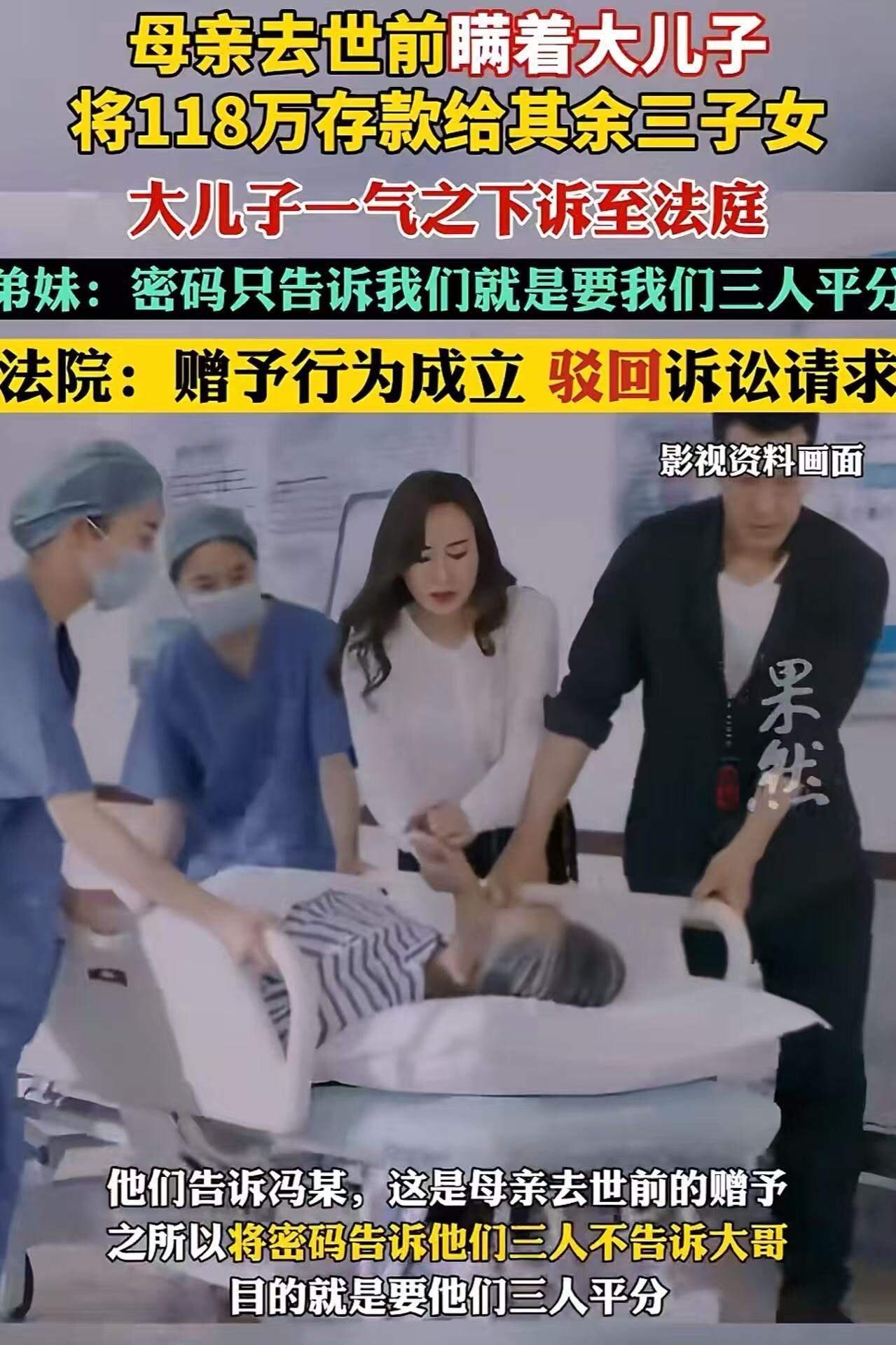 青海西宁,大哥整理母亲遗物发现,三弟妹偷偷取走118万遗产!弟弟妹妹:“母亲去世前告诉我们的密码,不告诉你就是要我们三人平方!”大哥不信,同样是子女凭什么自己没有?于是将弟弟妹妹告上法庭,可法院的判决让他傻眼了! 青海西宁的一个普通家庭,背后却隐藏着一场令人扼腕叹息的家庭风暴。大哥整理母亲遗物时,无意中发现了一份沉甸甸的秘密——那是一份价值118万的遗产!这个数字仿佛一把利剑,锋利地刺入了这个家庭的平静表面。 然而,更让人震惊的是,弟妹竟然偷偷取走了那笔遗产!当大哥愤怒地追问“这笔钱到底去了哪里”,弟弟妹妹却一本正经地反击:“母亲在临终前告诉我们的密码,既然不告诉你,就是要我们三人公平分配!”这句话仿佛是一场家庭信任的考验,也揭示了人性中那难以捉摸的贪婪与自私。 你是否曾以为,亲情是无价的?但在现实中,血浓于水的家庭关系,也会因为利益而变得扭曲。大哥坚信,兄弟姐妹应该共同面对,公平分配,毕竟母亲的遗愿还在那儿写着“平等”二字。然而,法庭的判决却让人扼腕叹息——原来,遗产的分配并非那么简单。 法院的裁决似乎站在了“法律”而非“情感”的角度,却也让人深思:当人们面对遗产时,究竟是信任还是猜疑在作祟?是责任还是私欲在驱使?这场家庭争端,究竟是法律的胜利,还是人性的败局? 这不仅仅是一场官司,更是一面镜子,映照出每个人心中的那份“欲望”。我们常说,金钱能使人变坏,但更深层次的原因,或许在于我们对“公平”的理解——究竟谁才是真正的“受害者”?是试图守护母亲遗愿的善良人,还是偷偷取走遗产的那一方? 故事的结局,或许没有一个完美的答案,但它让我们反思:在金钱与亲情的天平上,我们该如何取舍?在面对利益的诱惑时,是否还能坚守那份最纯真的信任?也许,最令人心碎的,不是遗产的数额,而是那些曾经坚信的“家”,最终变成了利益的战场。 这场家庭纷争,犹如一面镜子,映照出我们每个人心底那份对“公平”的渴望与“信任”的脆弱。你,又会站在哪一边?又会如何面对自己心中的那份“遗产”——无论是金钱,还是家人的爱?这一切,都值得我们深思。母亲遗产