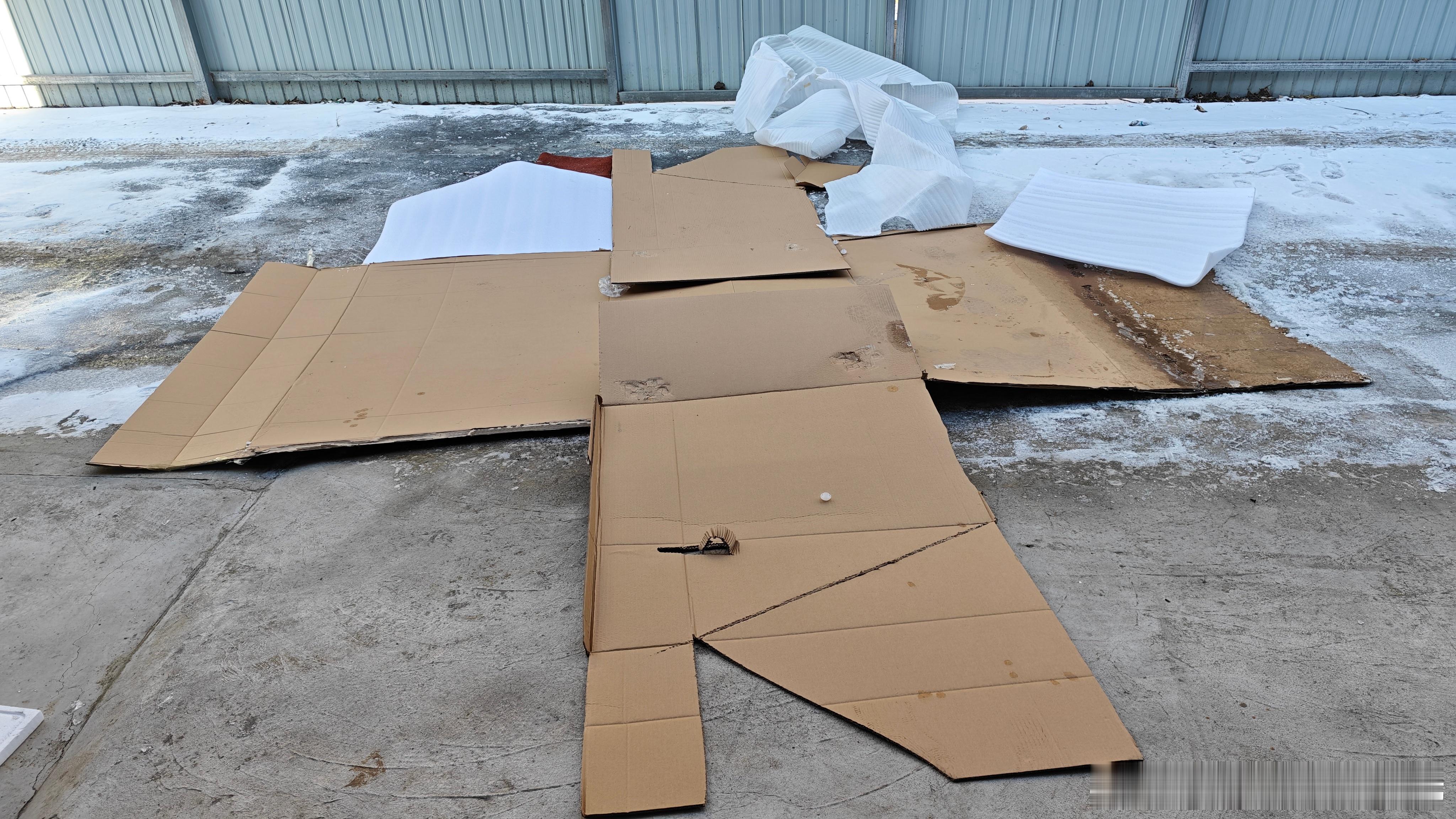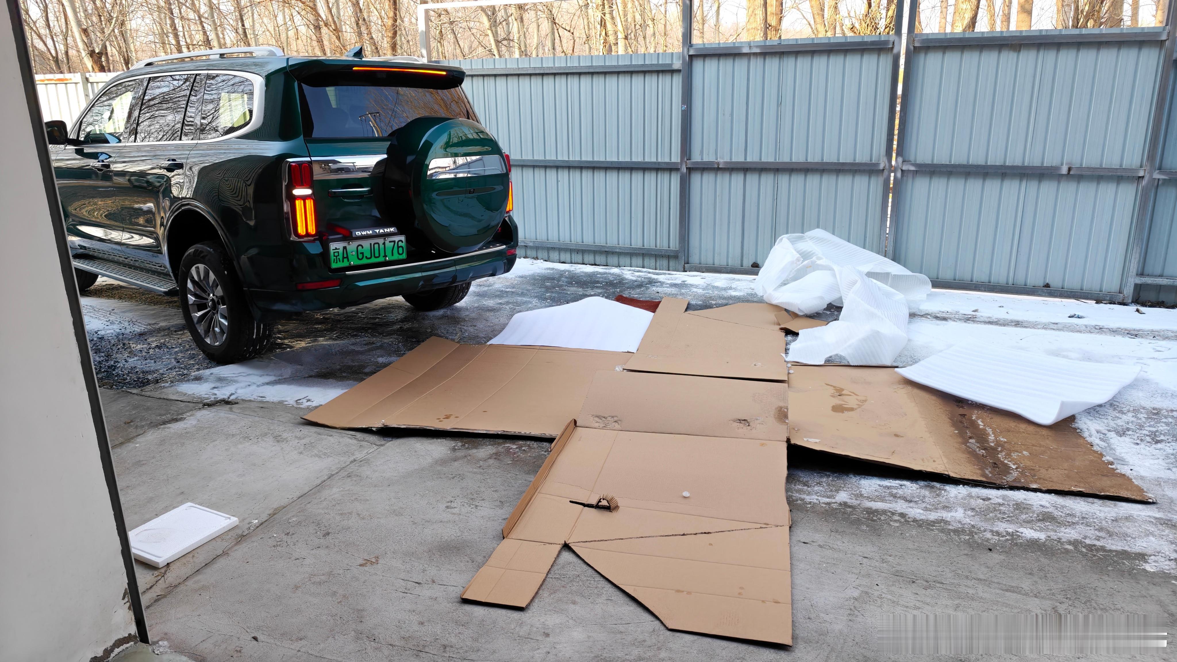事实证明,铲子并不好用……还是靠东风日产大沙发留下的大纸壳做防滑垫把车开进来的。