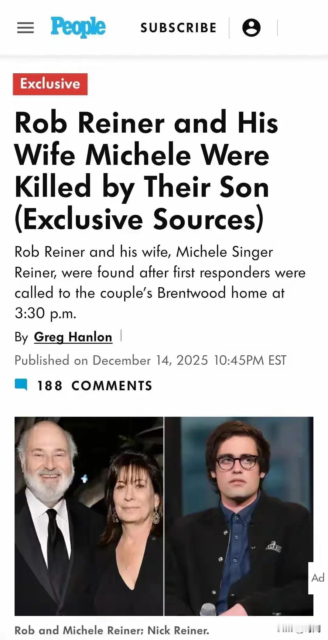 美国著名导演夫妇被吸毒儿子持刀杀害,美国毒品危害已经无法遏制。事发12月14日,美国著名导演罗伯·莱纳与妻子米歇尔·辛格·莱纳被他们的女儿罗米发现死于洛杉矶的家中。 警方经过调查确认,凶手正是这对夫妇的儿子尼克·莱纳。据了解尼克公开坦承,自己长期受毒瘾困扰,还曾有过数次无家可归的经历。被害的著名导演曾经导演过《怦然心动》《遗忘清单》《当哈利遇到莎莉》《危情十日》等高分电影。 美国著名导演被吸食毒品儿子杀害