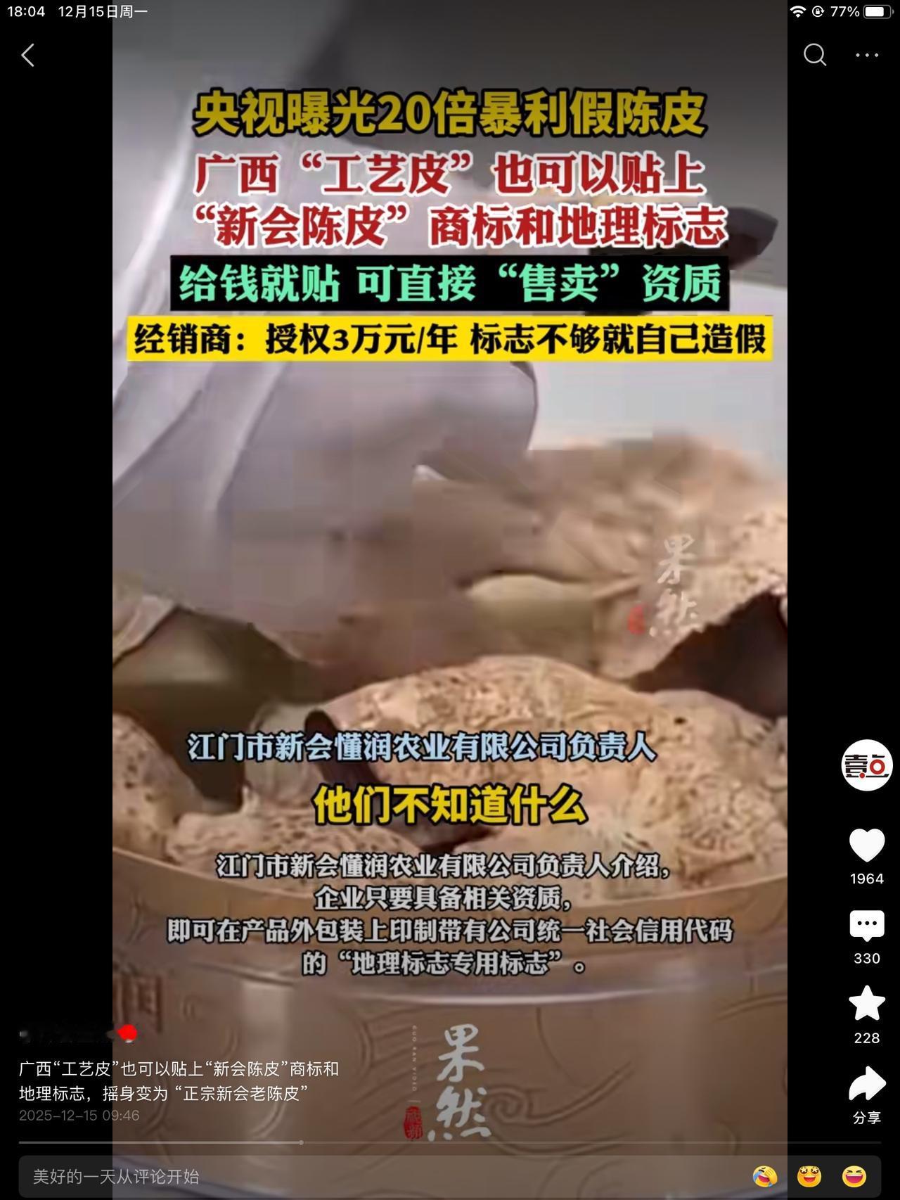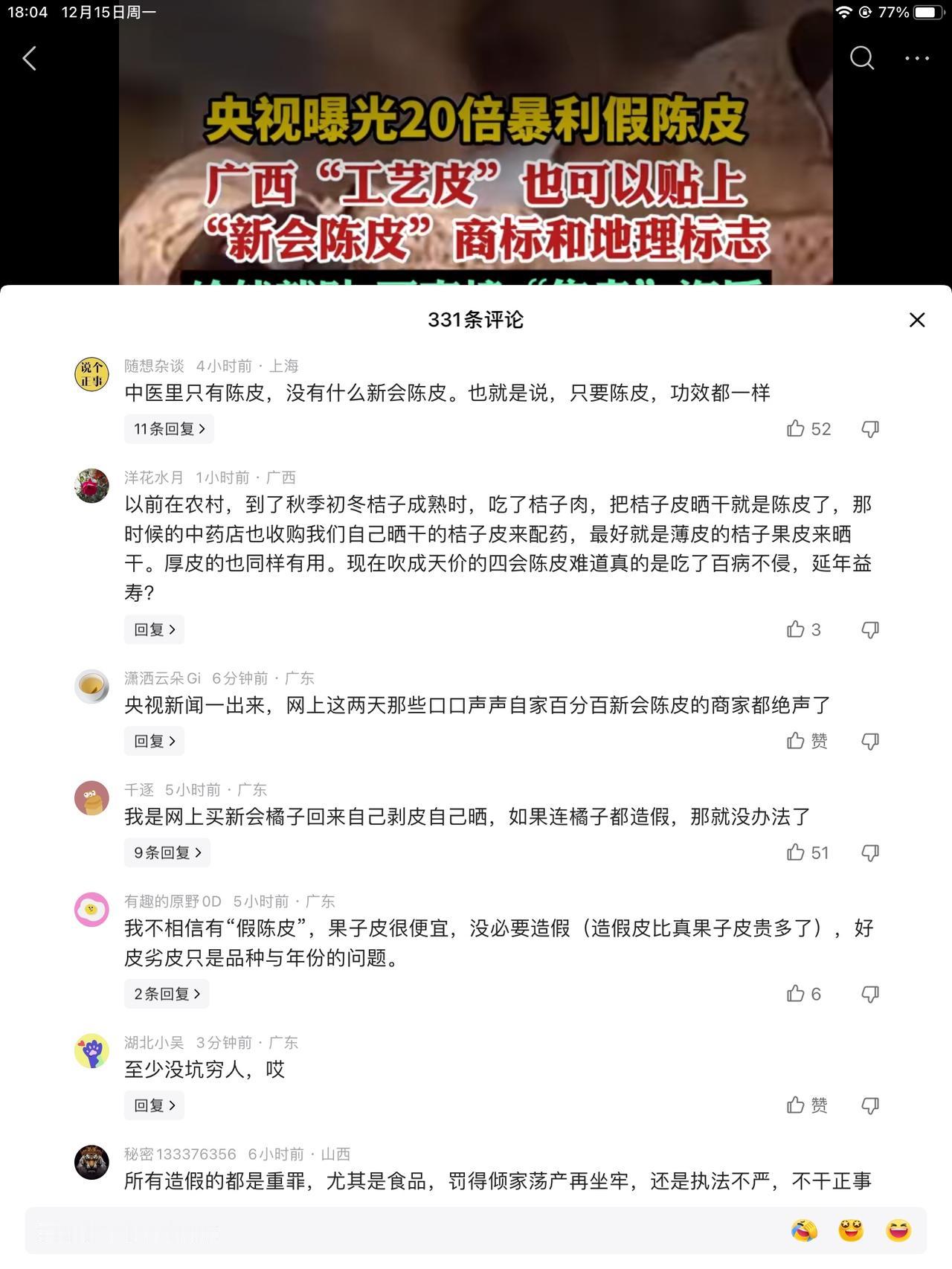 工艺皮替代新会皮这个当,我没上过。什么20年陈三十年陈卖白菜价。我真觉得,商家都