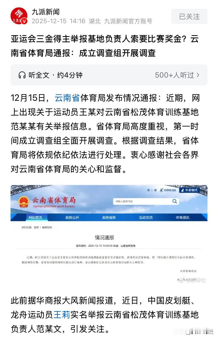 “严查严惩!”云南,龙舟运动员、亚运三金得主王莉实名举报控诉云南省松茂体育训练基
