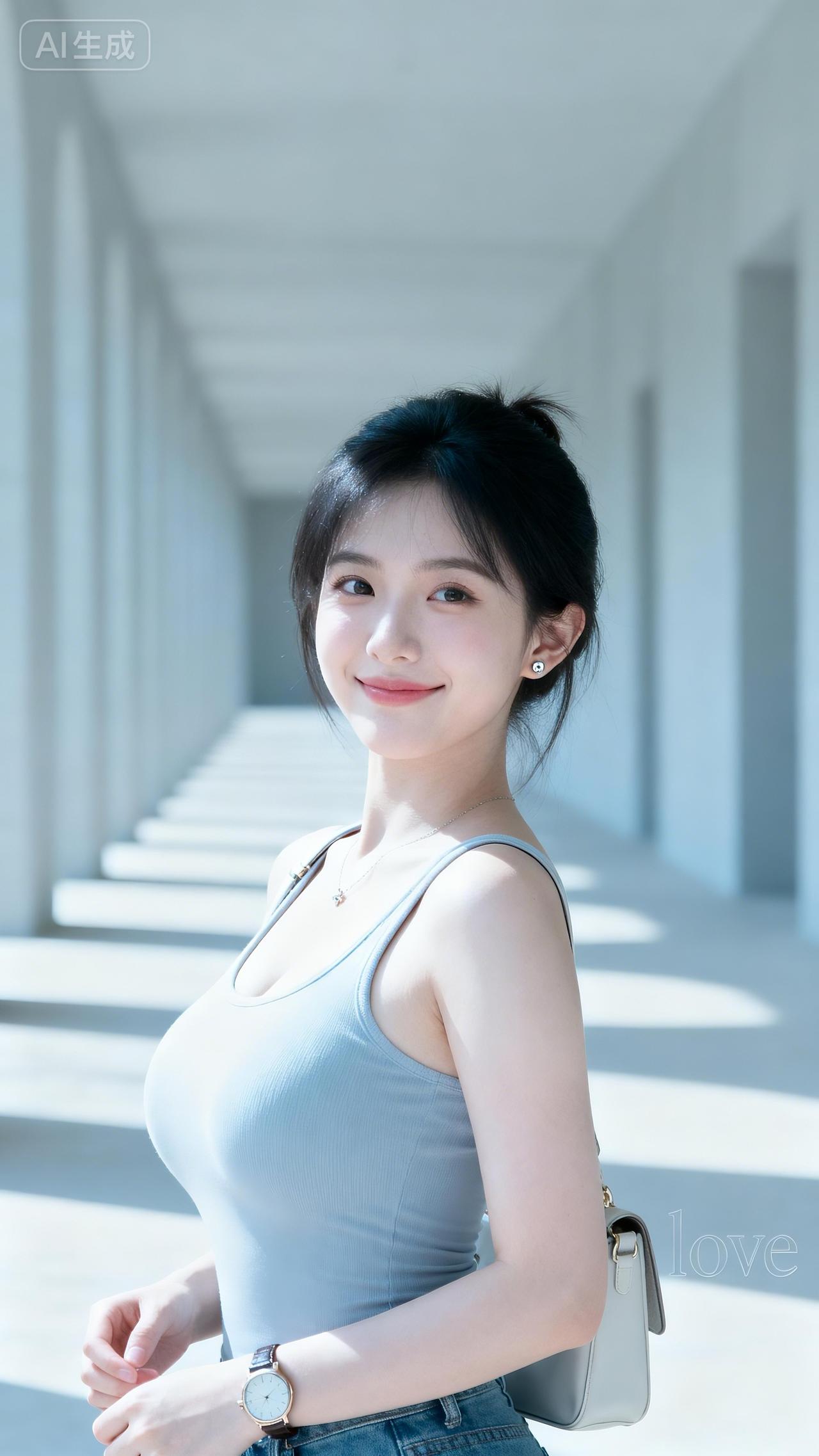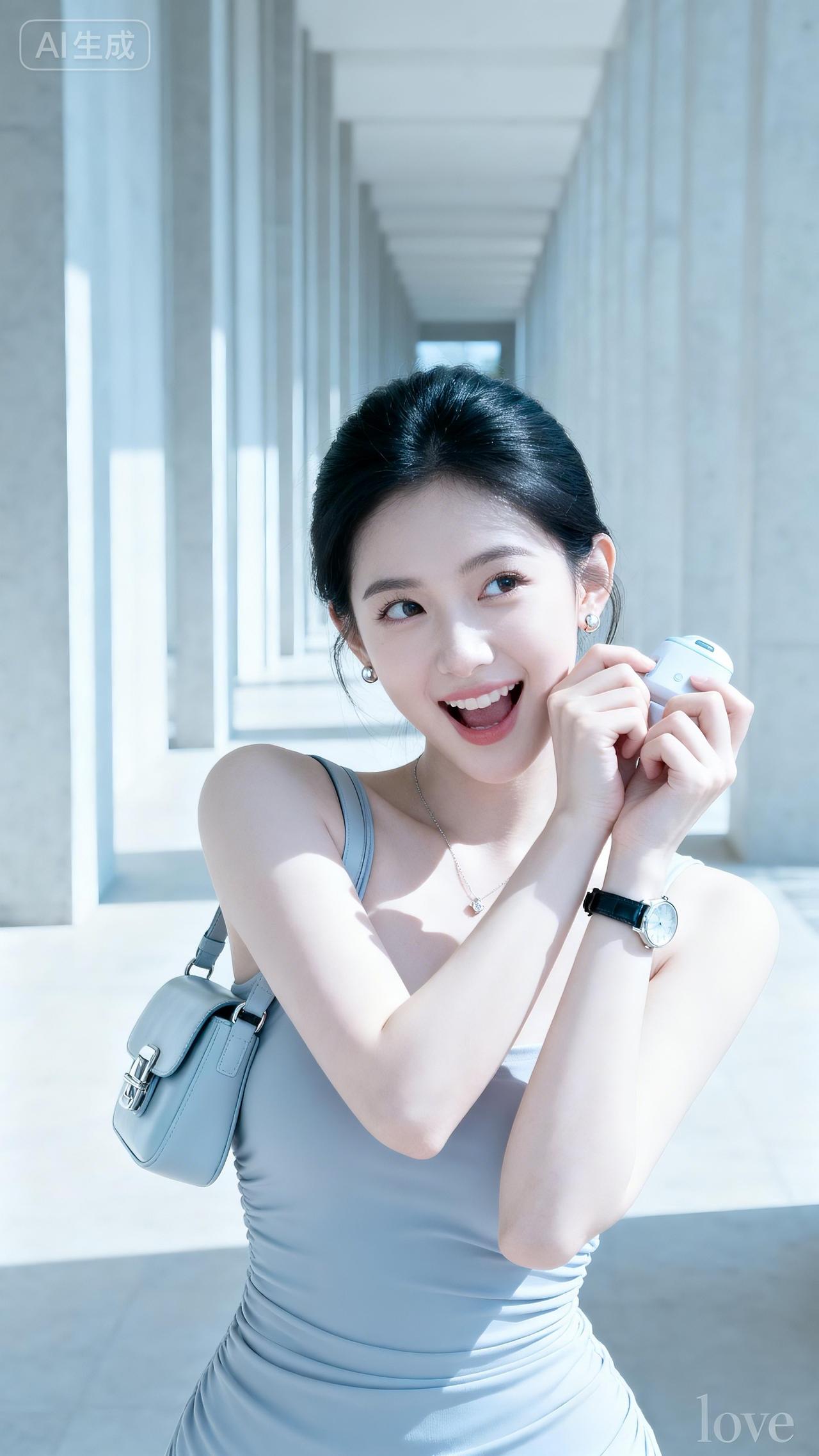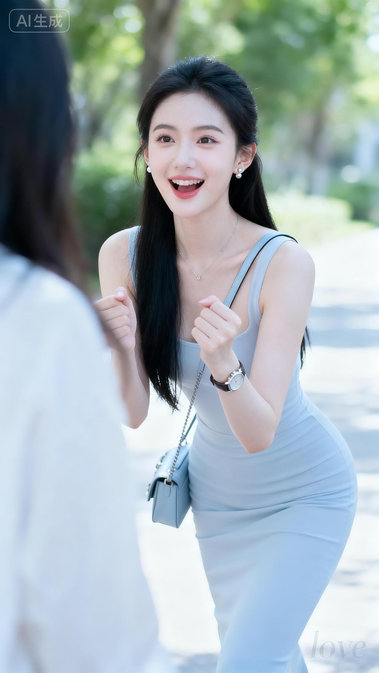 林荫道的光里,浅蓝裙裹着笑,攥紧的拳头都浸了雀跃的甜。 夏日甜飒穿搭