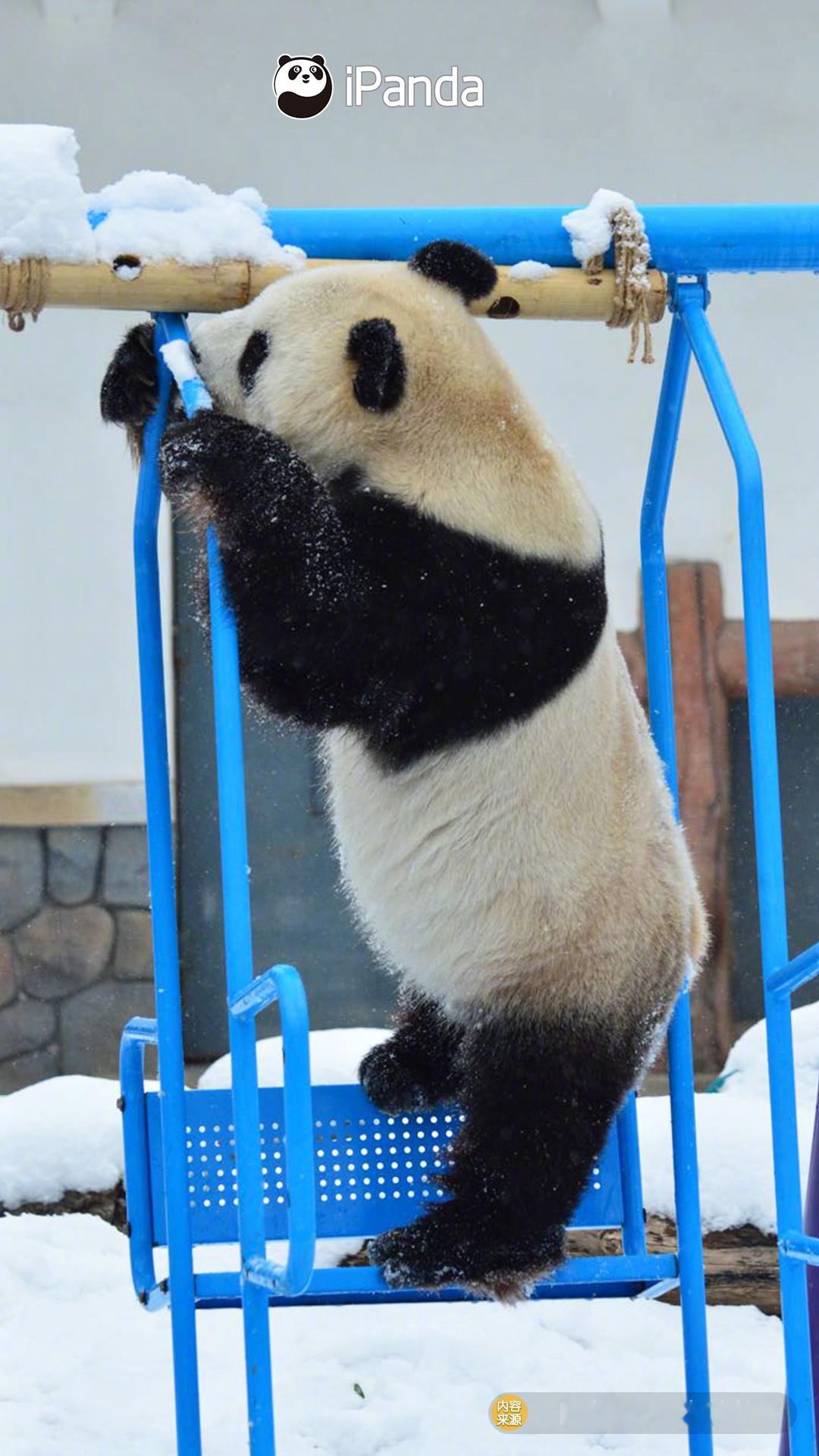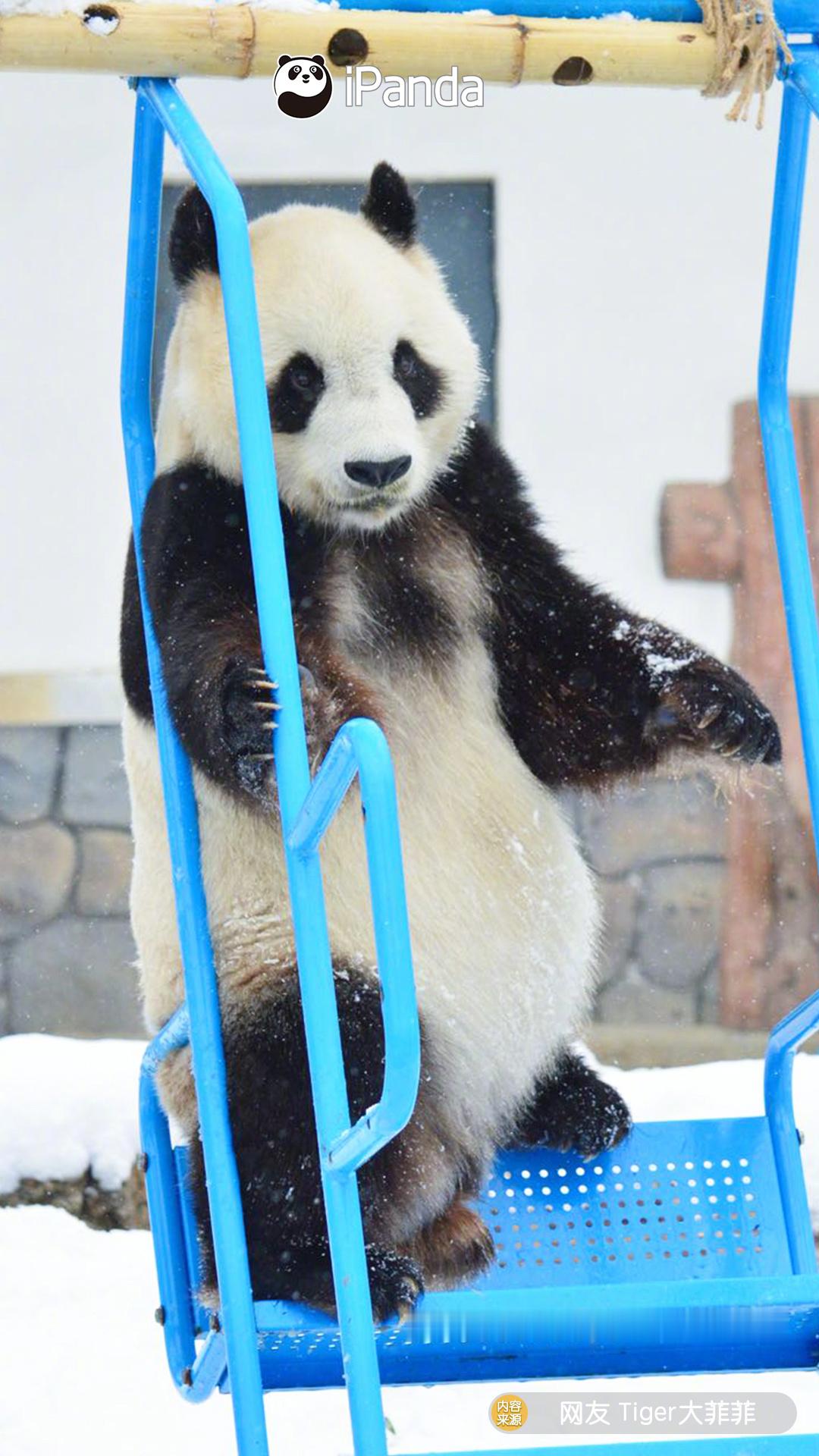 比玩秋千更快乐的是雪中玩秋千!大熊猫华奥熊猫趣图(图片来源:Tiger大菲